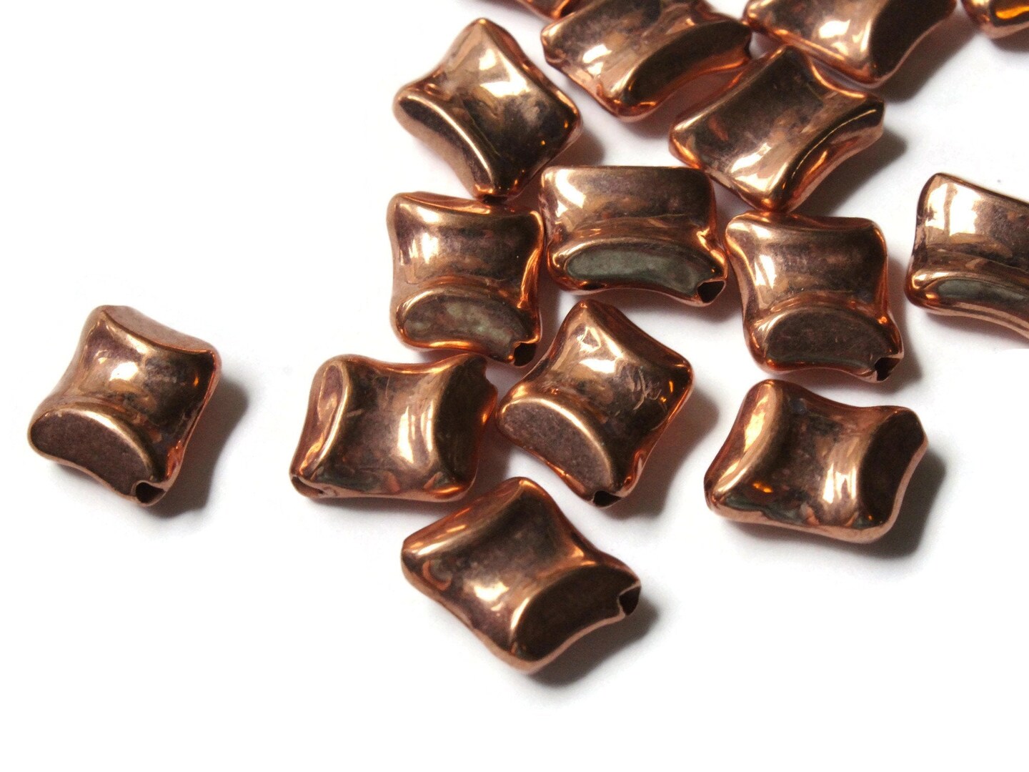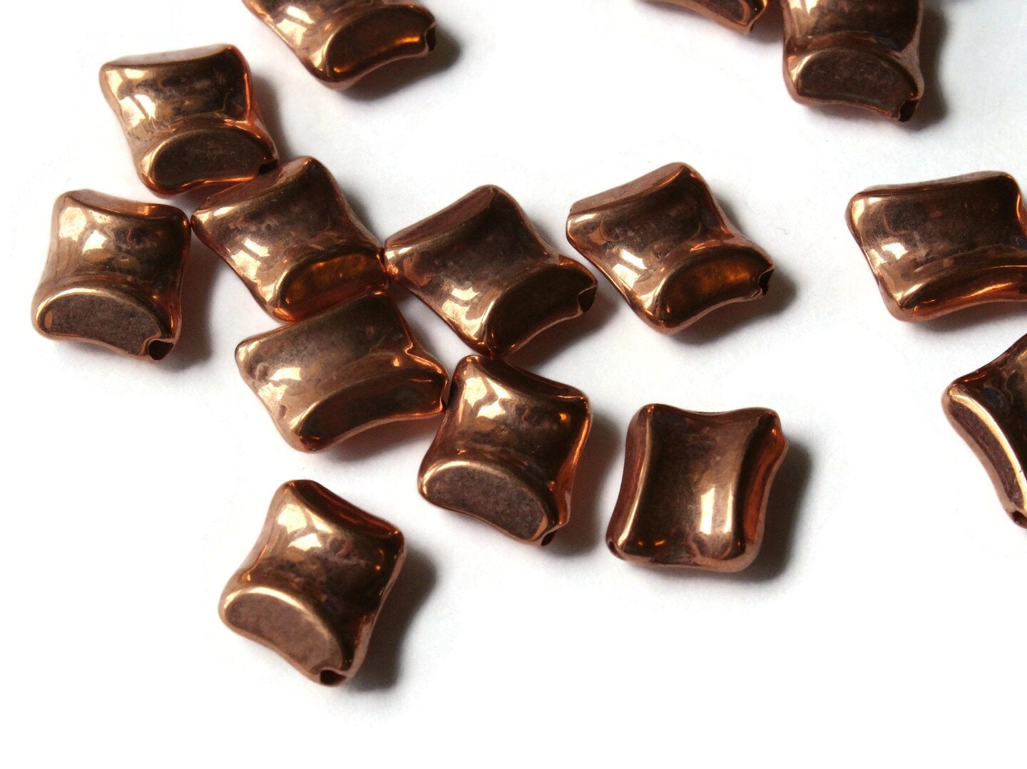 20 14mm Twisted Diamond Vintage Red Copper Plated Plastic Beads Loose New Old Stock Beads