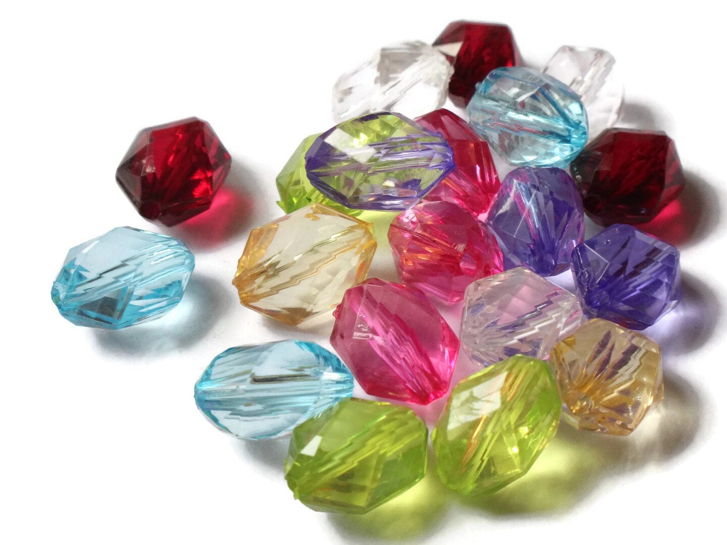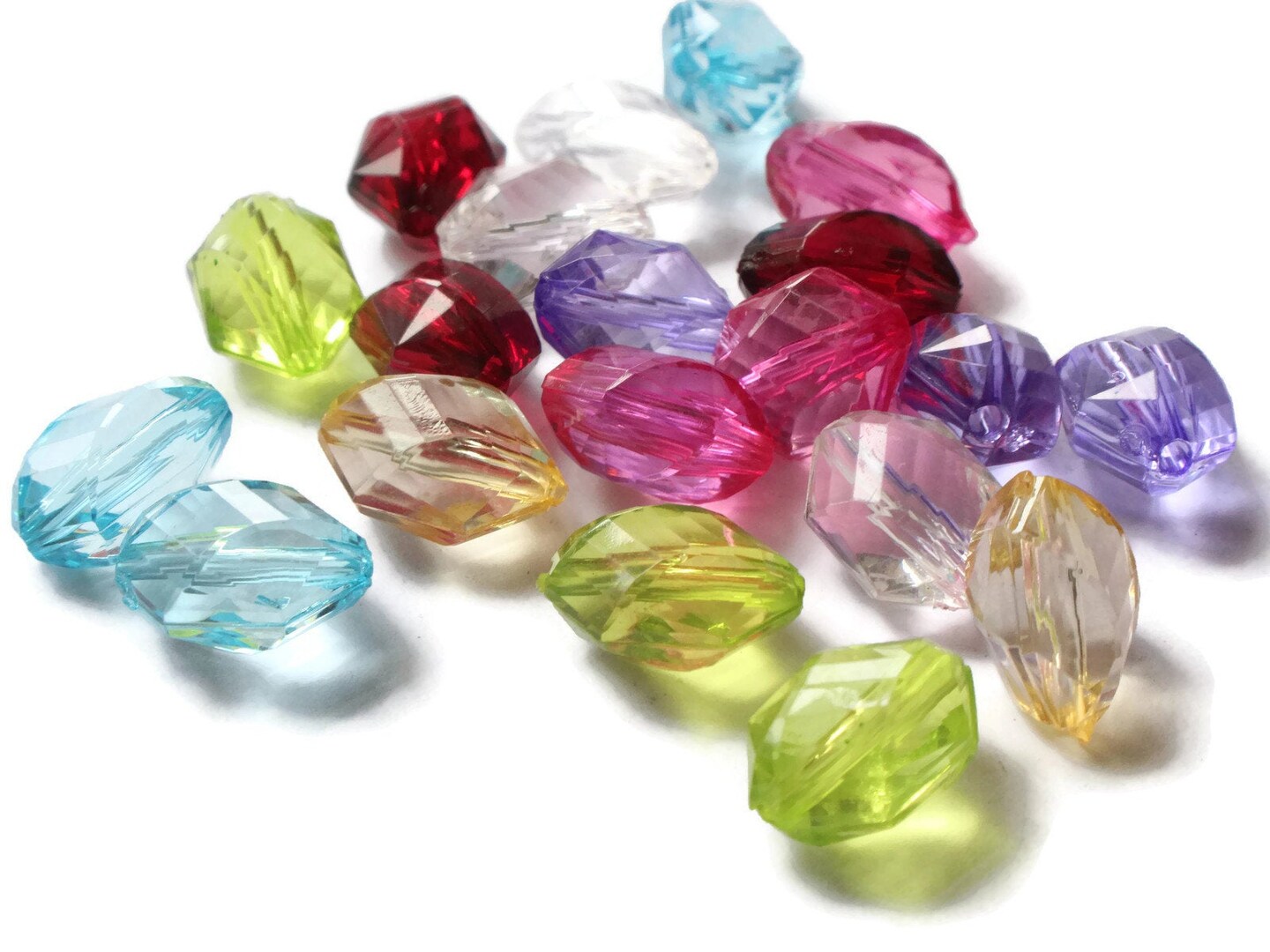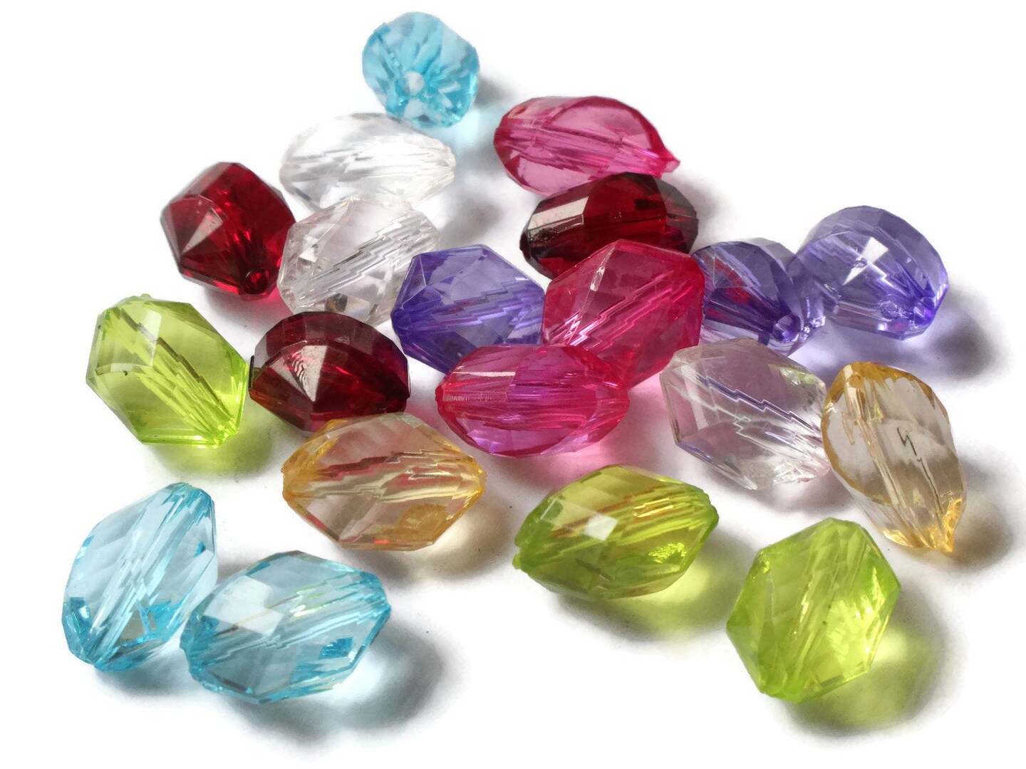 20 15mm Mixed Color Faceted Acrylic Oval Beads