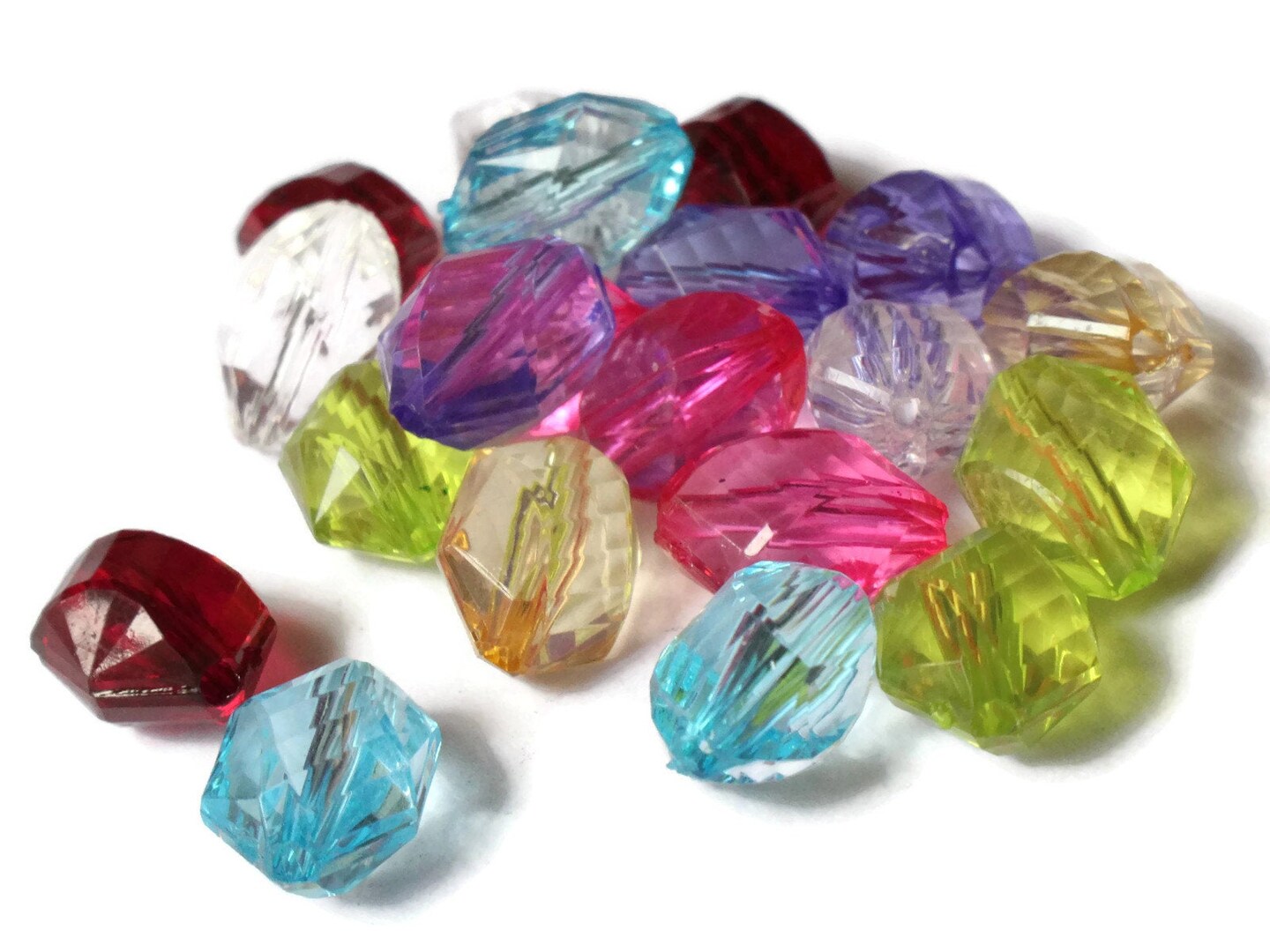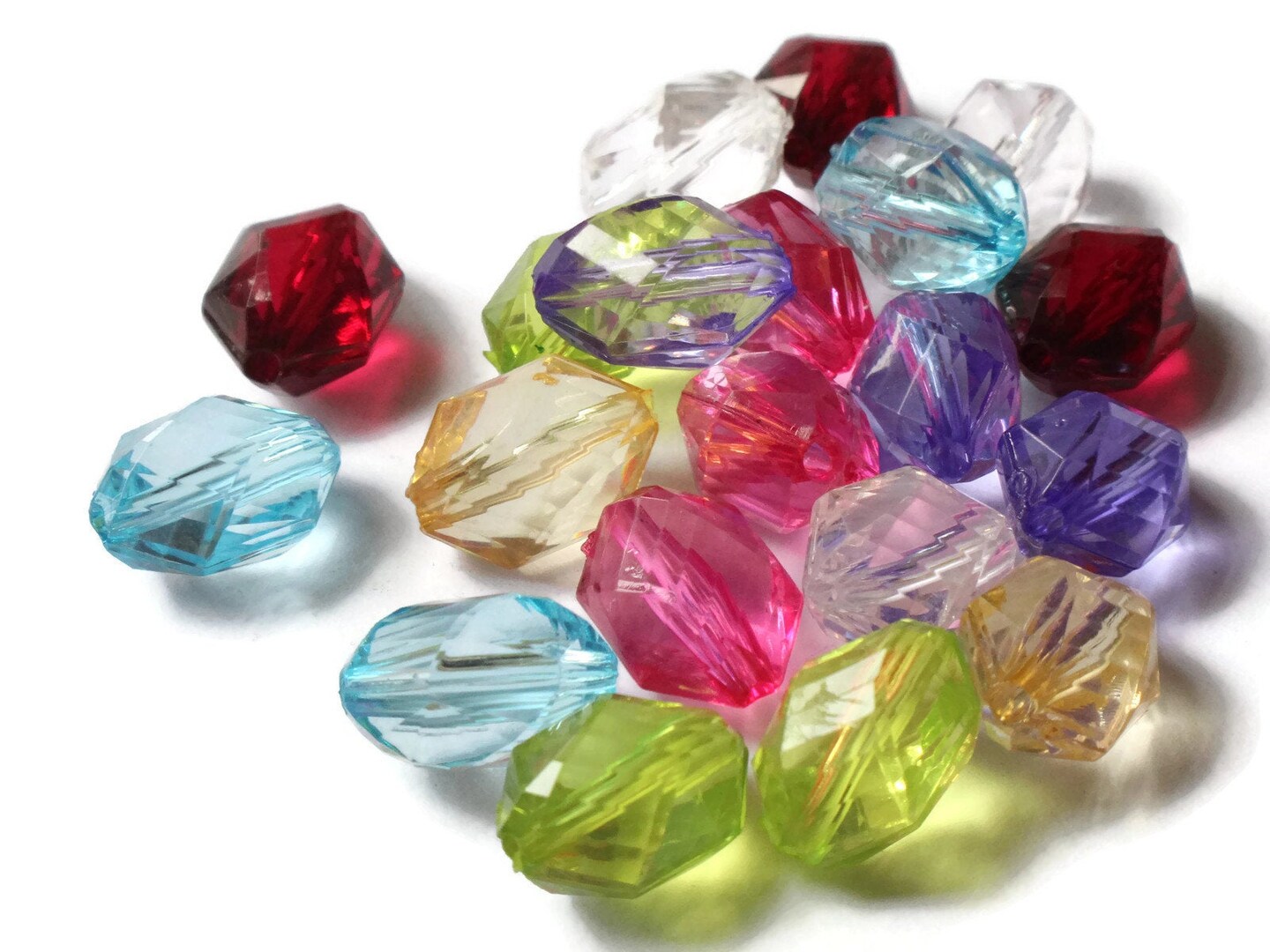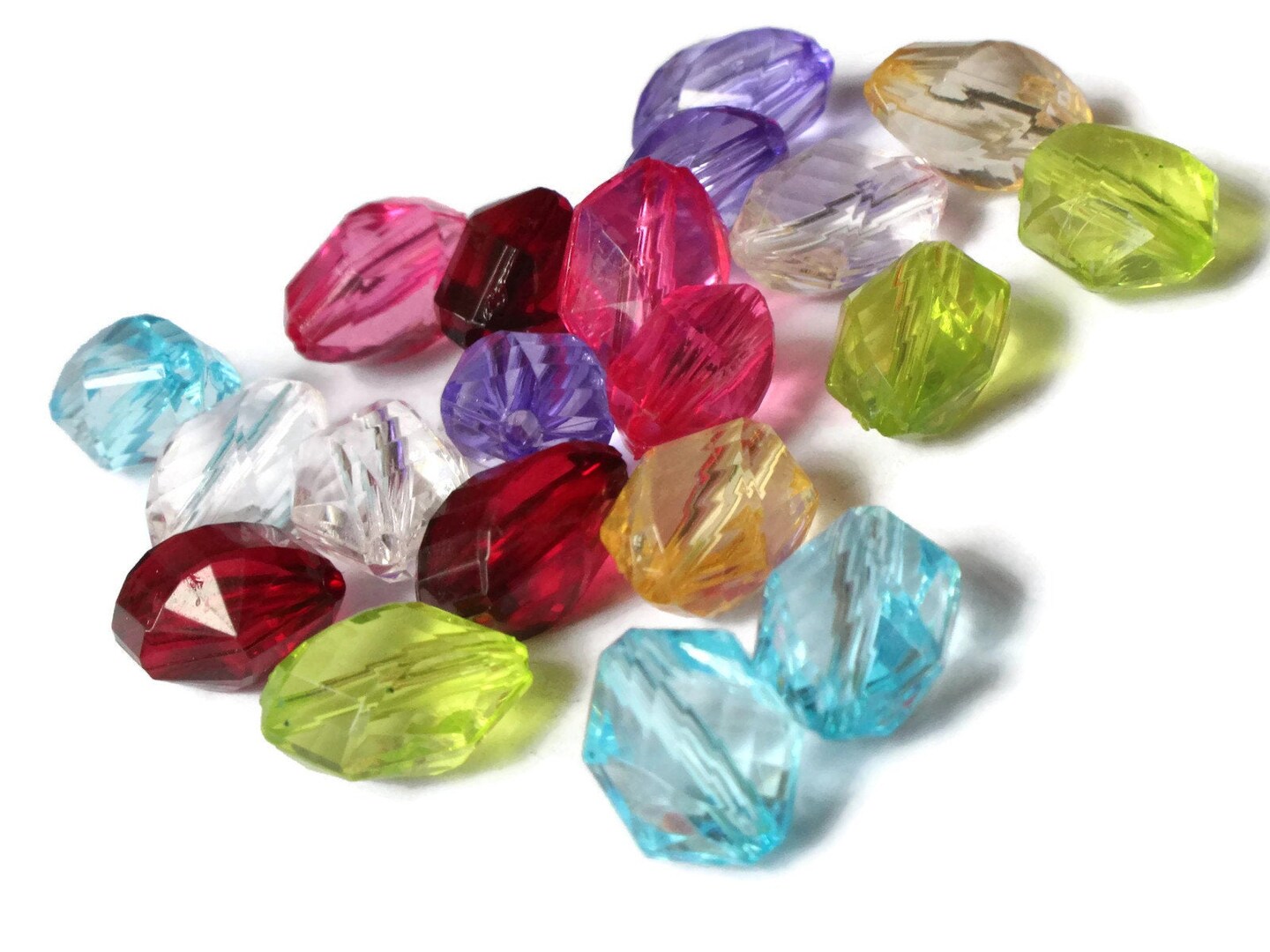 20 15mm Mixed Color Faceted Acrylic Oval Beads