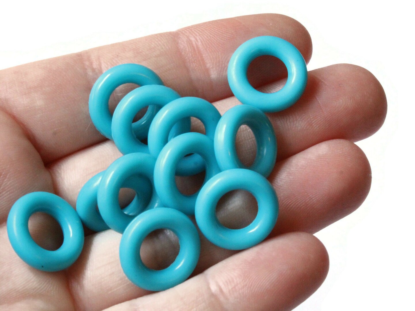 20 15mm Sky Blue Vintage Plastic Ring Beads - Links