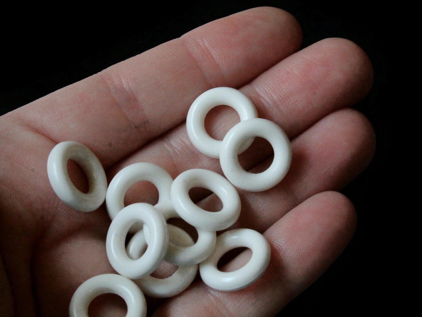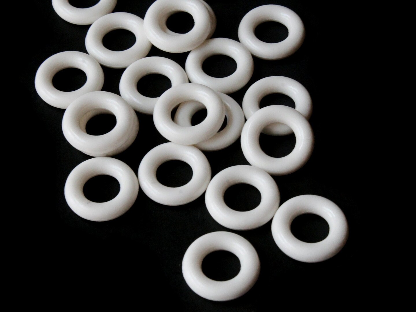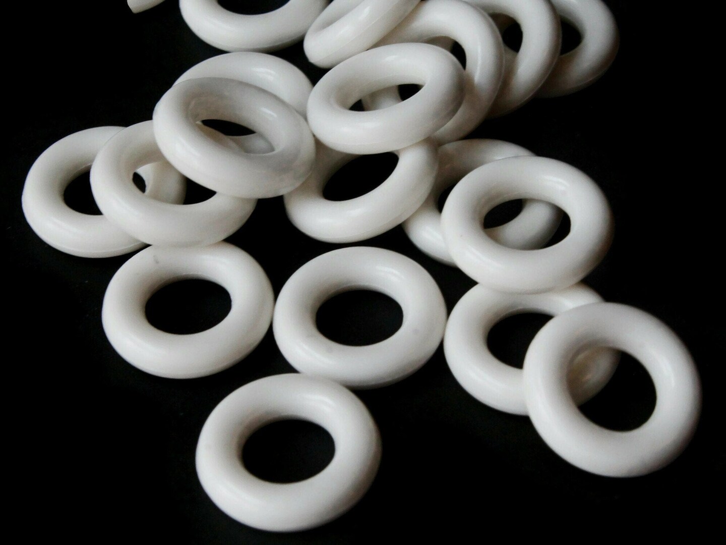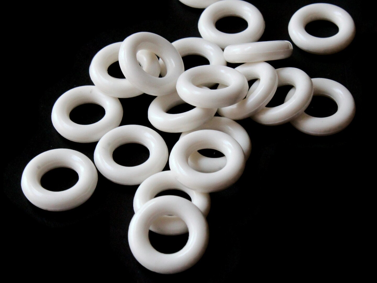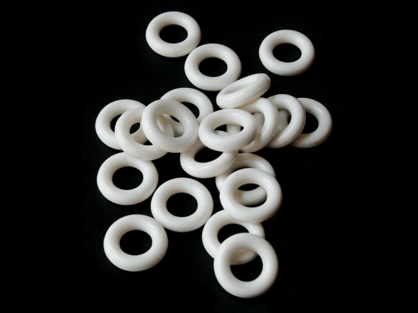 20 15mm White Vintage Plastic Ring Beads - Links