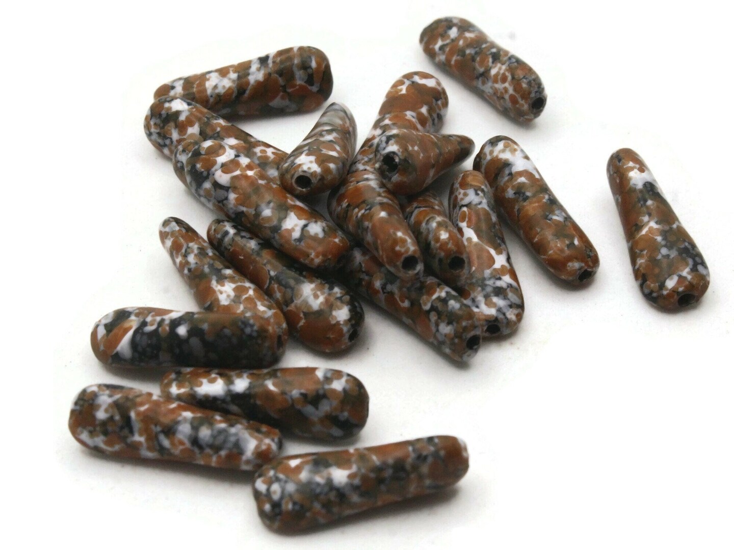20 18mm Brown White and Black Vintage Plastic Pinched Tube Beads