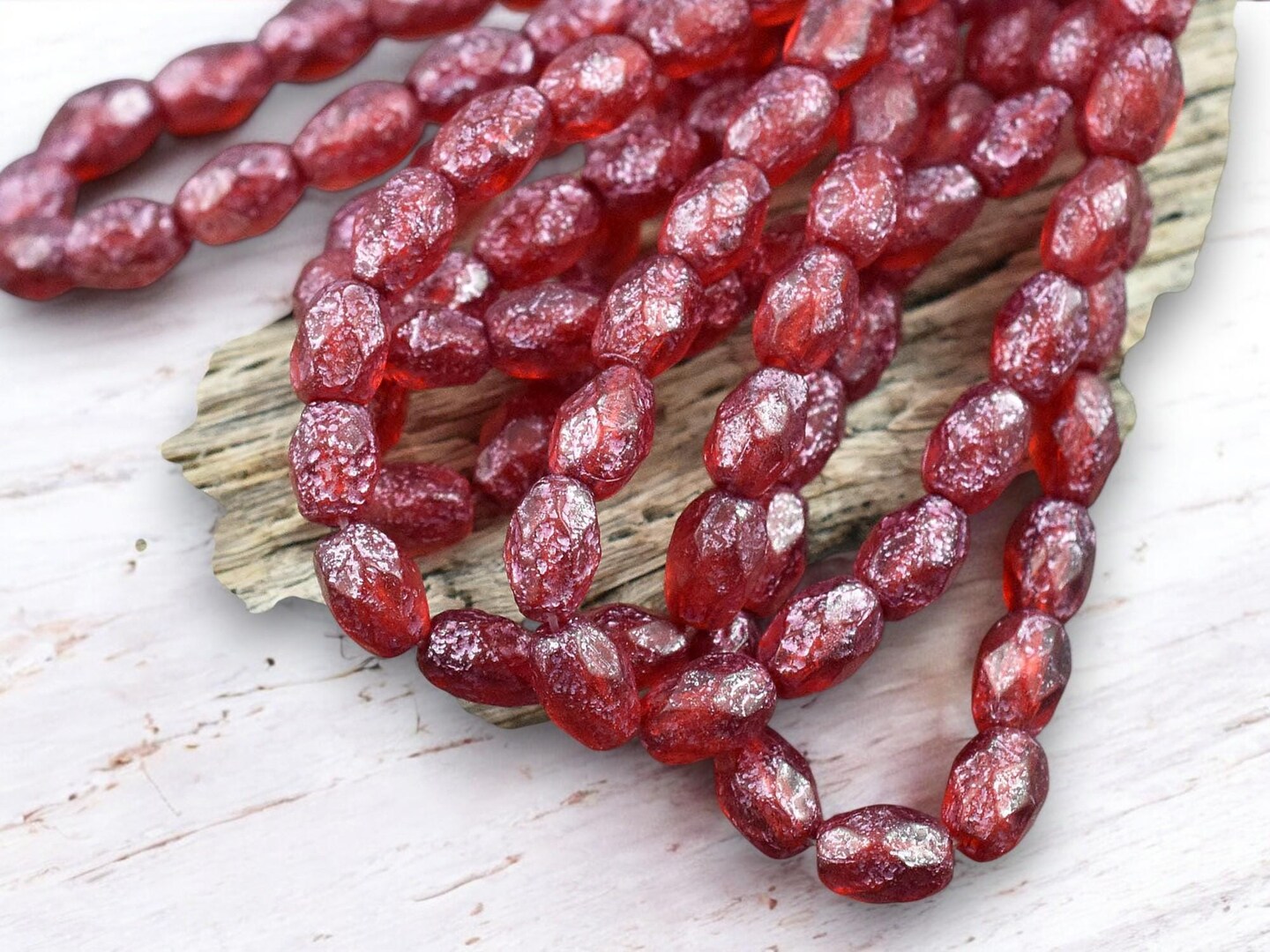 *20* 5x7mm Metallic Pink Washed Etched Ruby Red Fire Polished Faceted Oval Beads