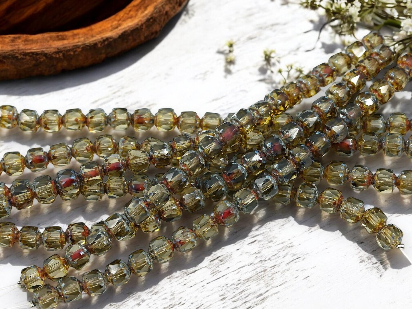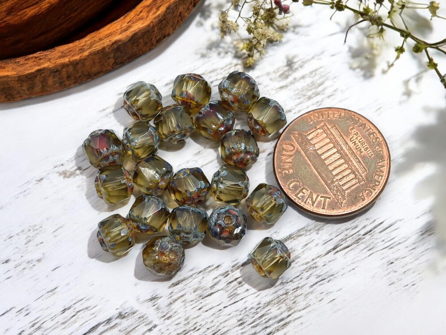 *20* 6mm Smokey Crystal Picasso Fire Polished Cathedral Beads