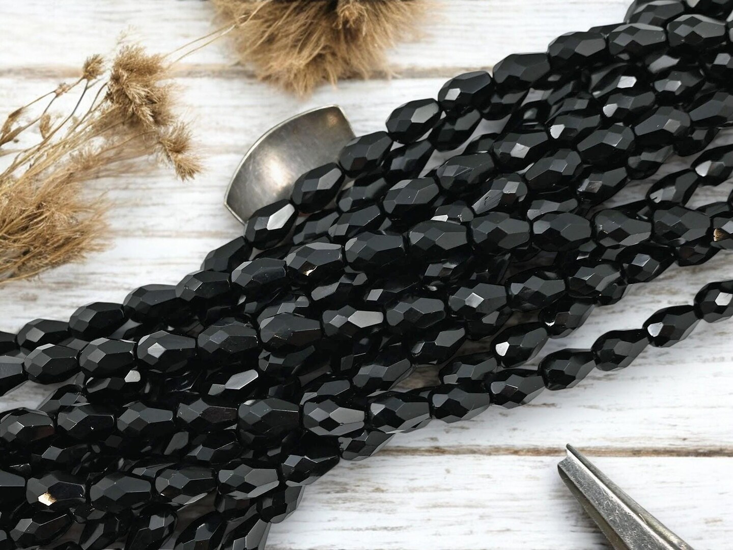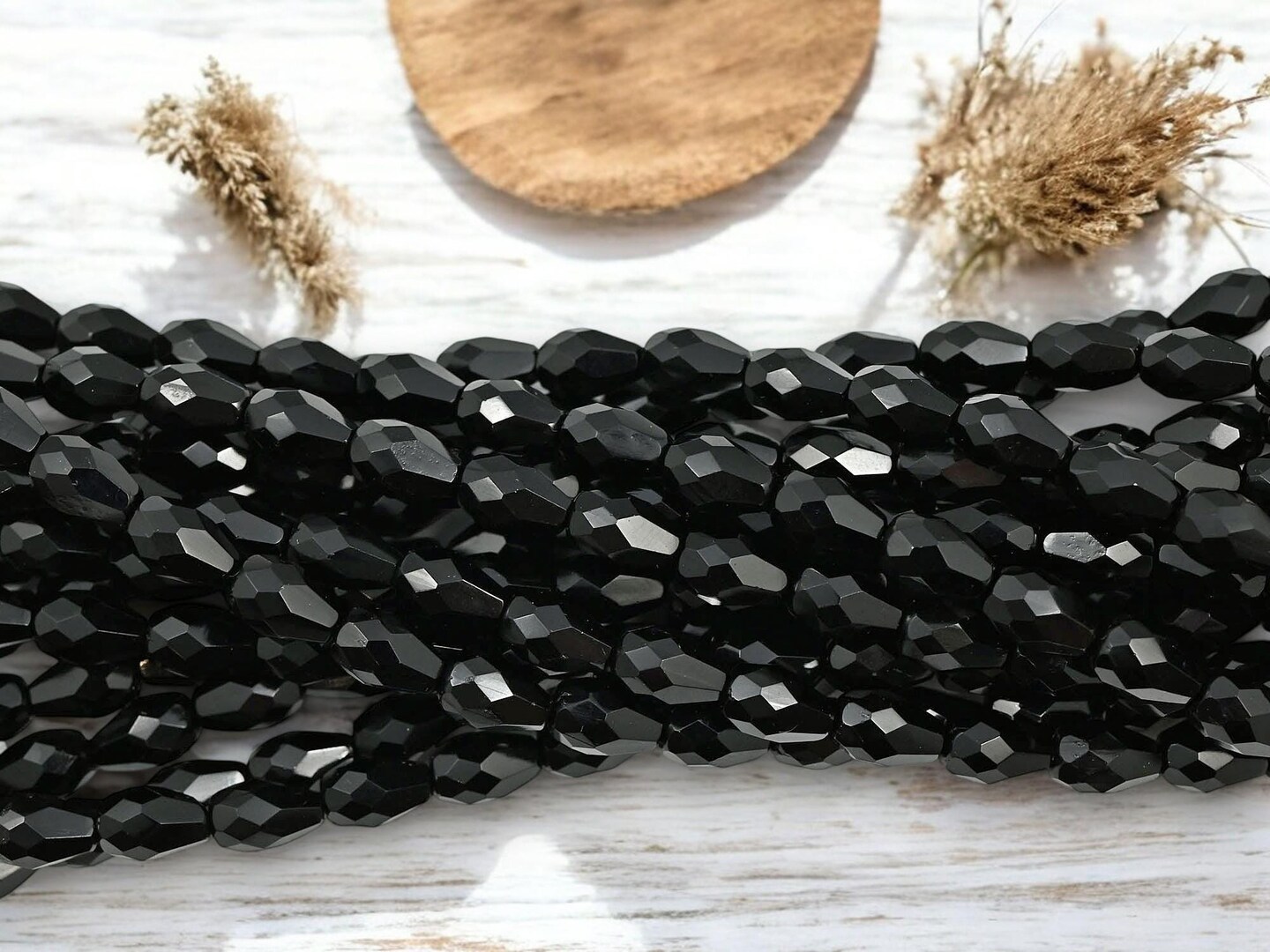 *20* 6x10mm Opaque Black Gemcut Teardrop Beads