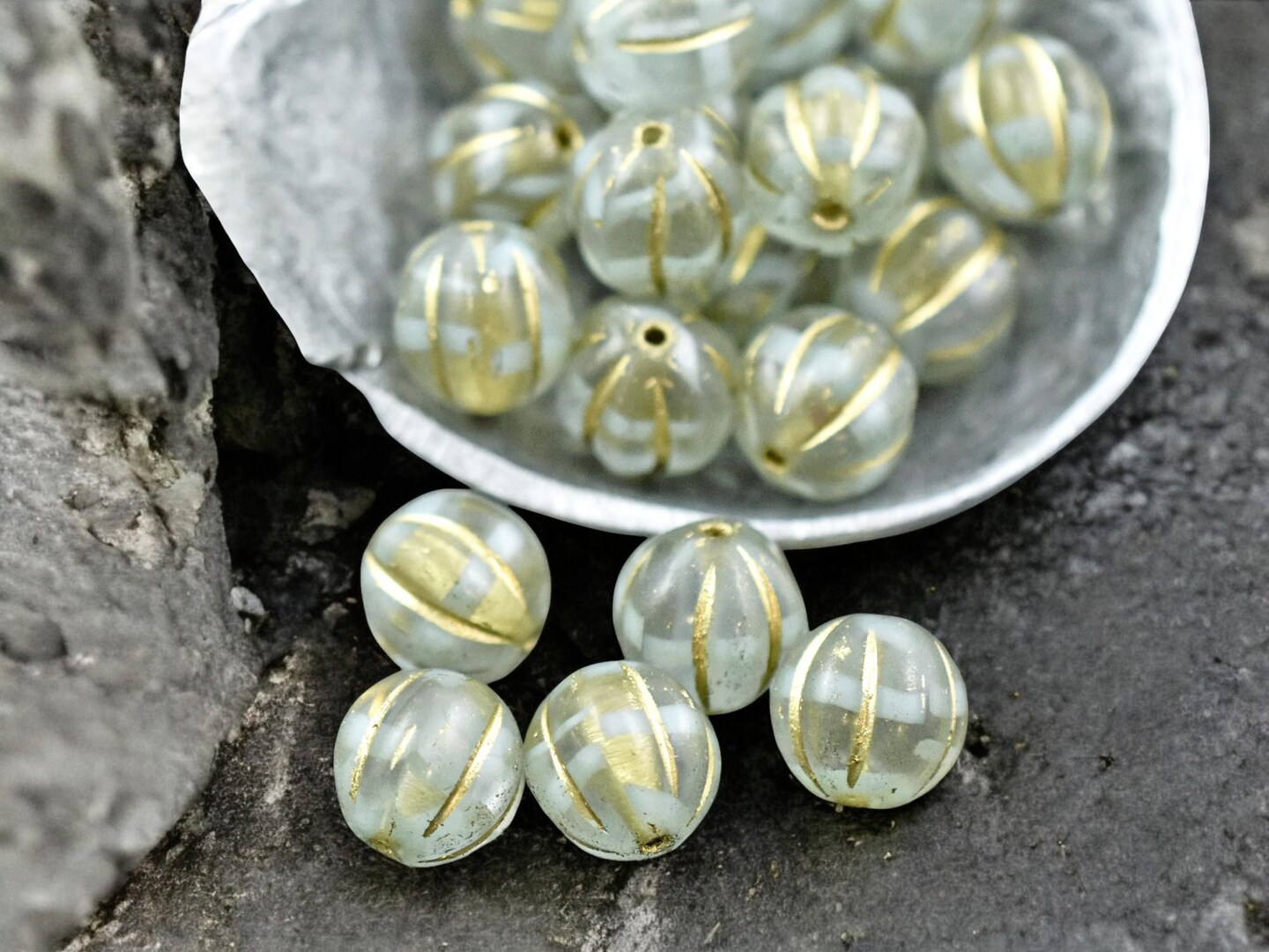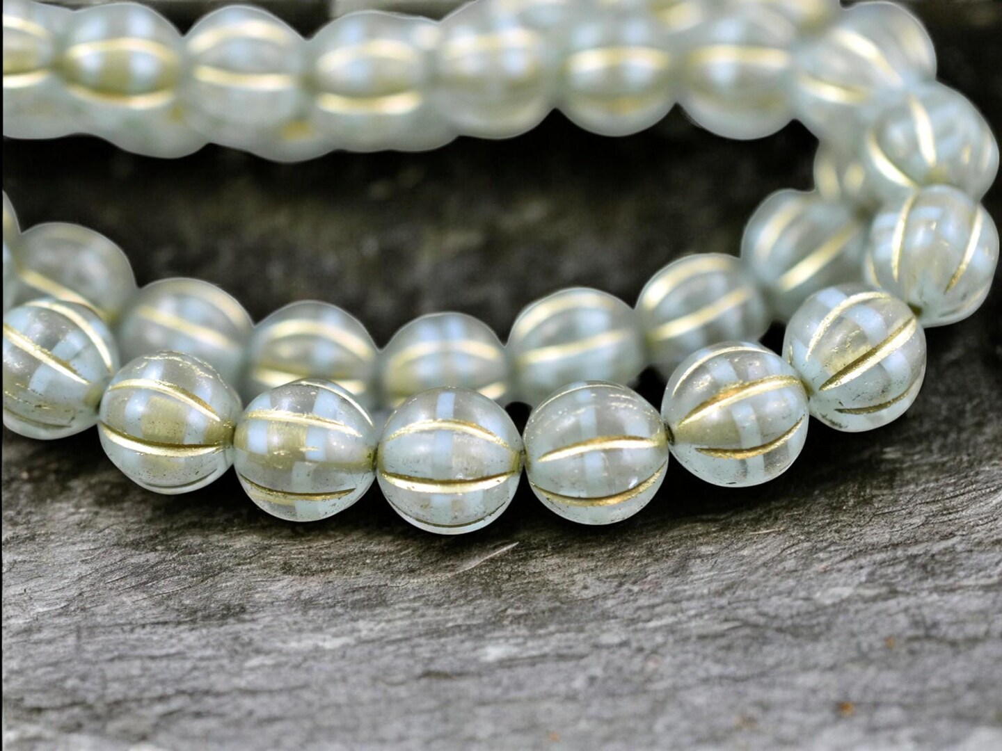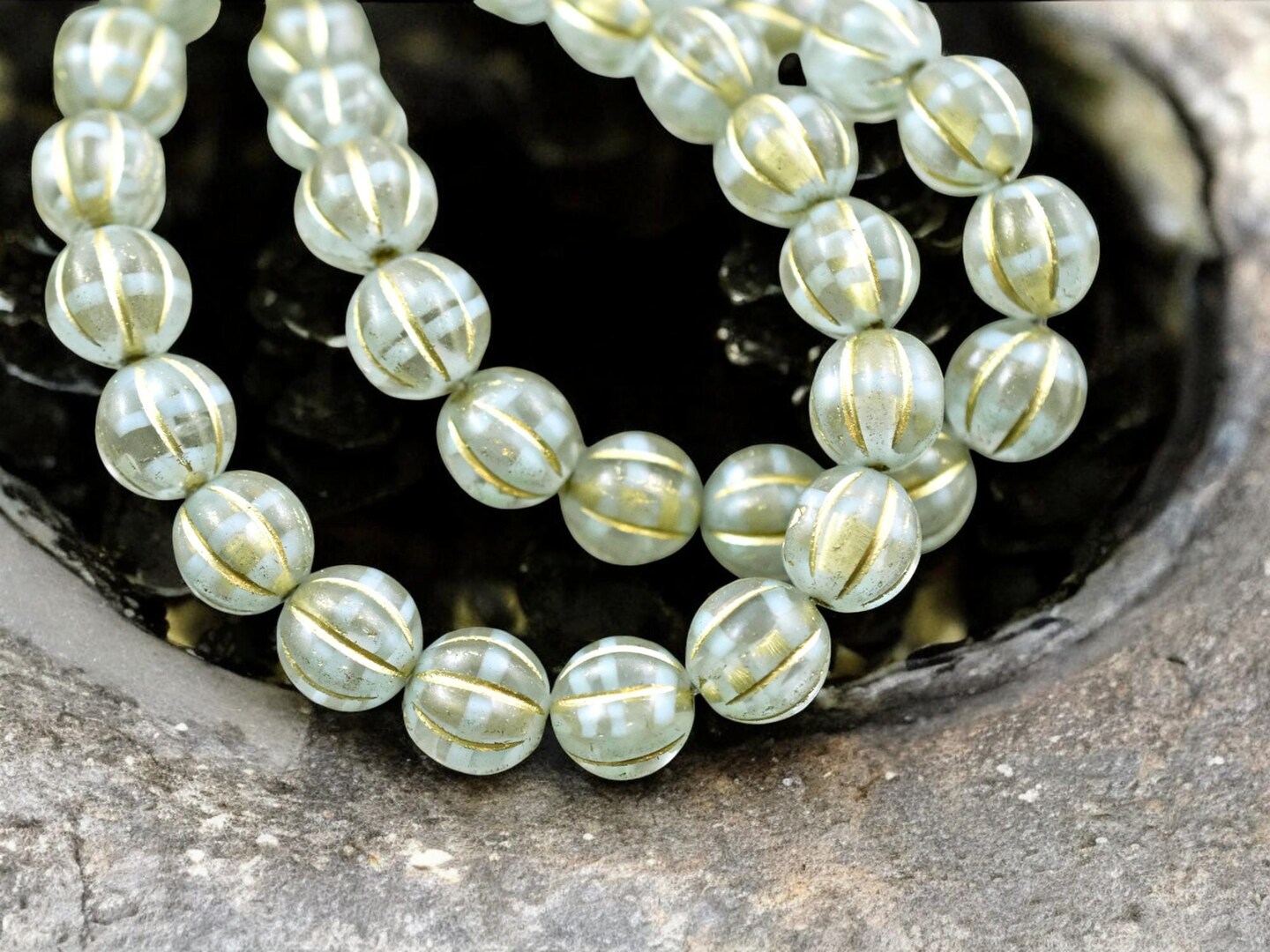 *20* 8mm Gold Washed Mint Crystal Melon Beads