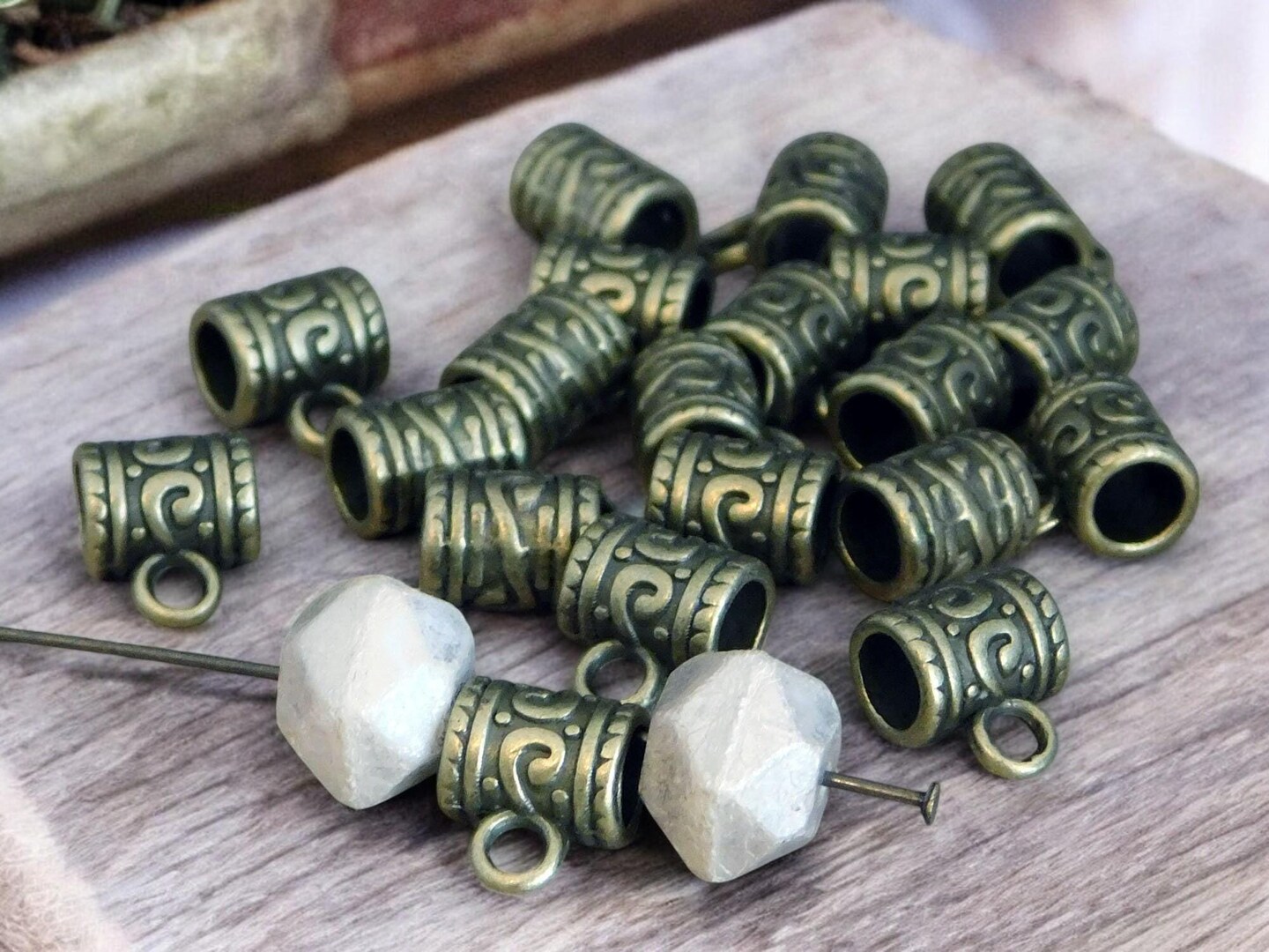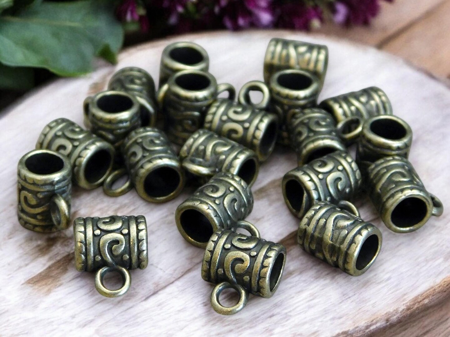 *20* 9x7mm Antique Bronze Tube Bail Beads
