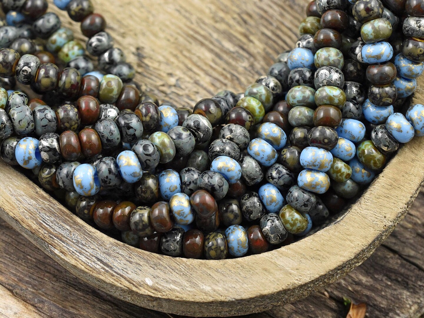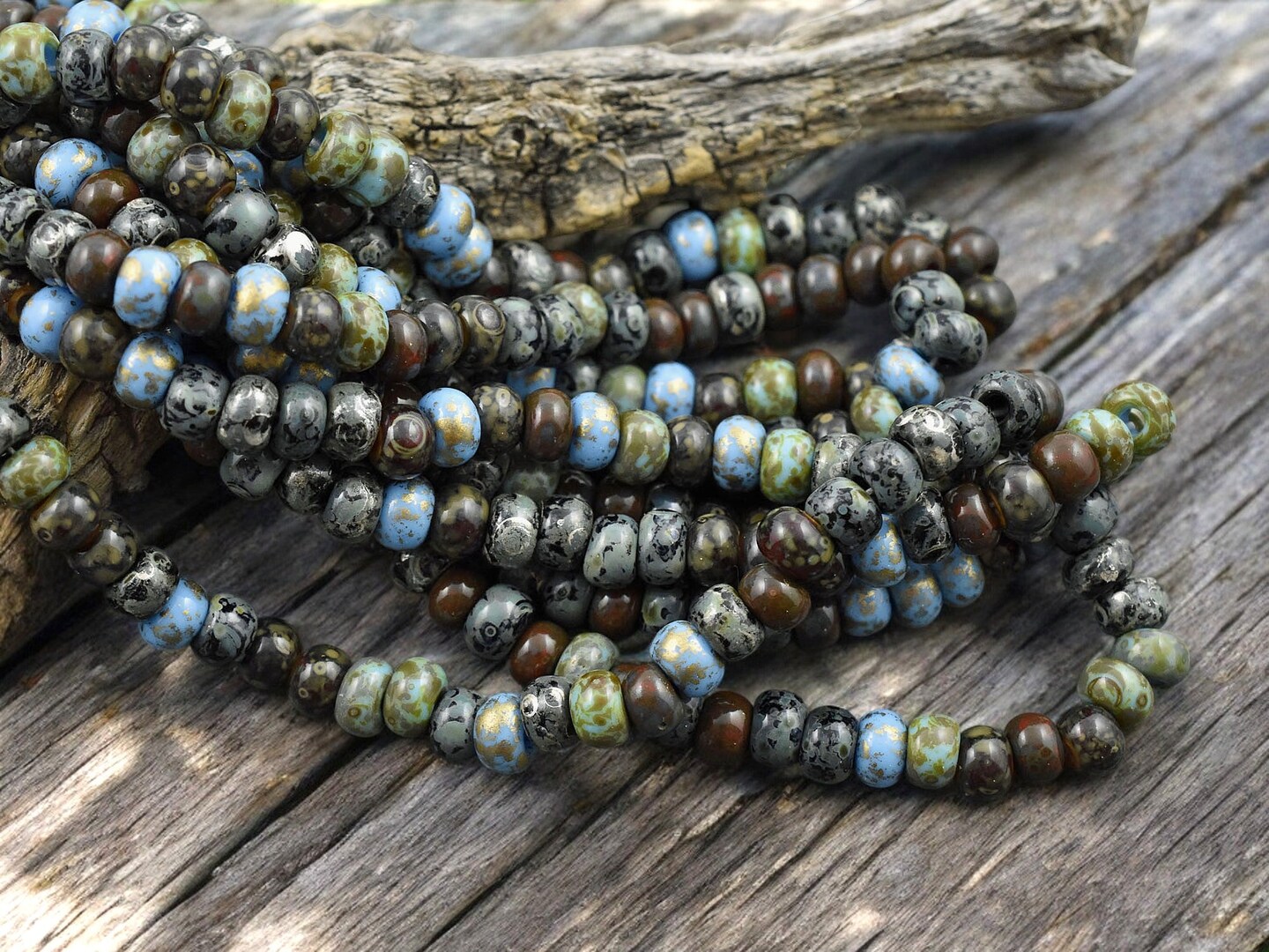 2/0 Aged Nyx Picasso Mix Seed Beads (19' Strand)