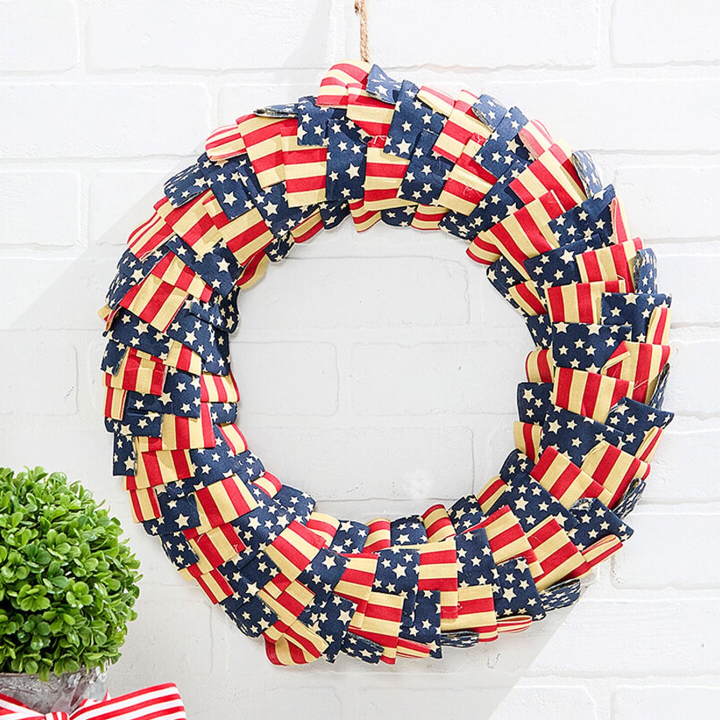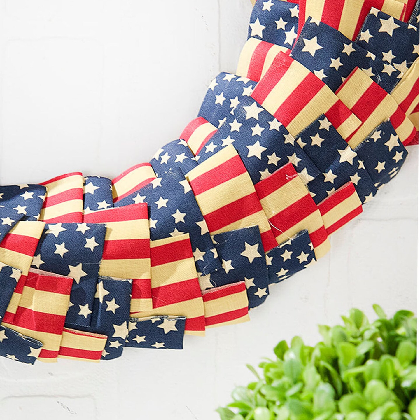 20" Americana Fabric Wreath Patriotic Red, White & Blue Décor for Front Door or Wall