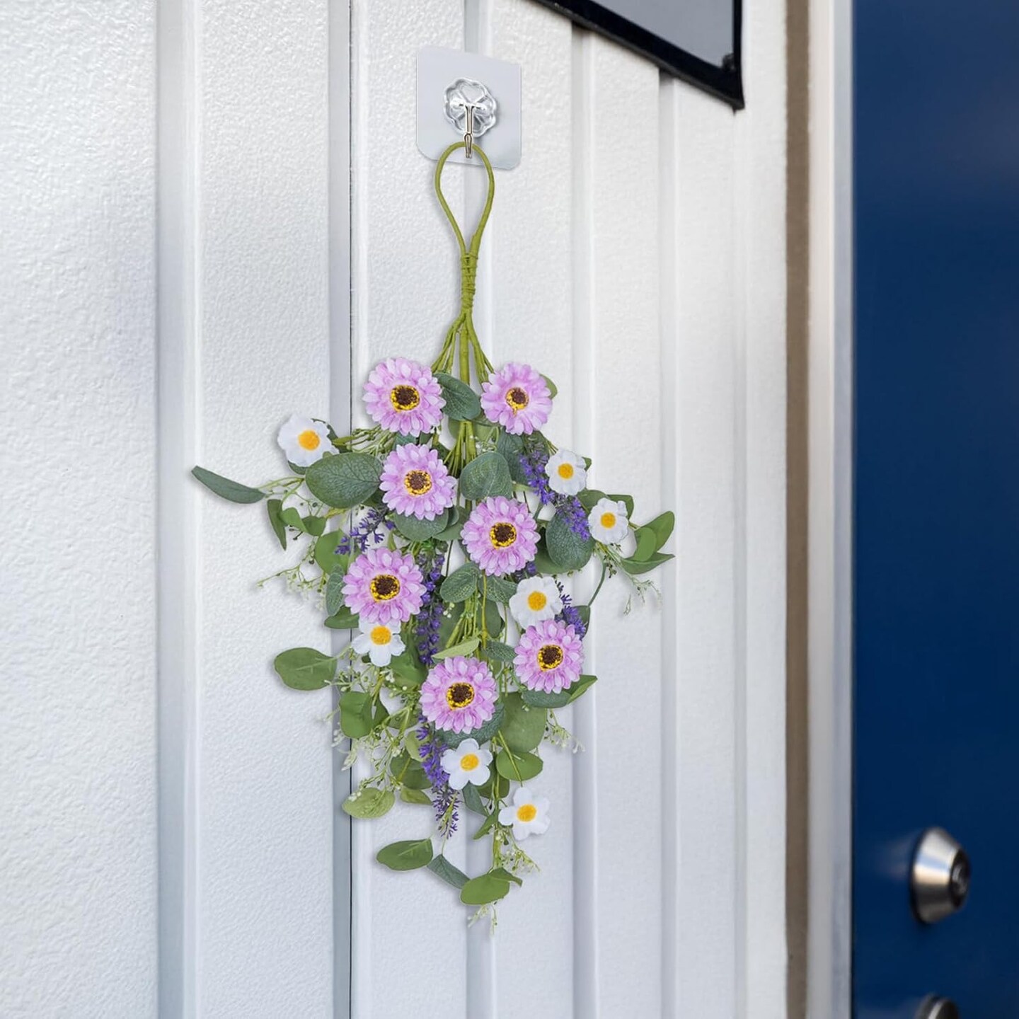 20" Artificial Purple & White Daisy Teardrop Swag