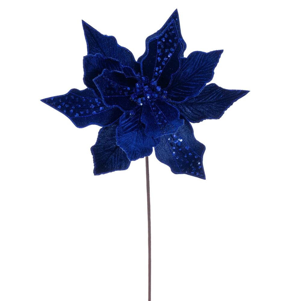 20" Blue Velvet Striped 10" Flower 3/Bag