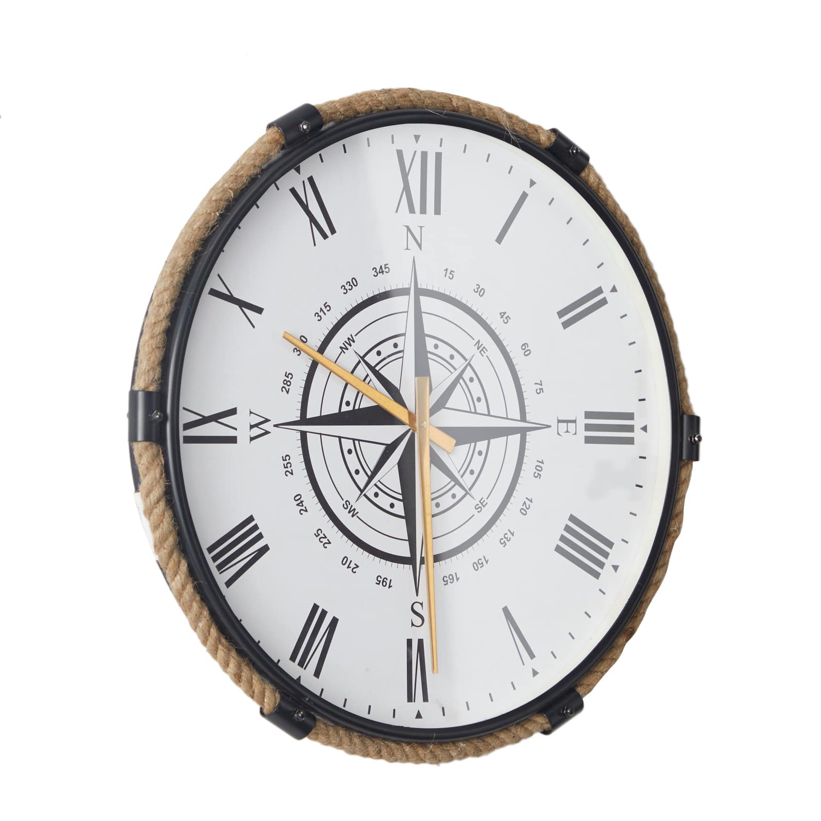 20" Brown Stainless Steel Compass Wall Clock with Rope Accents