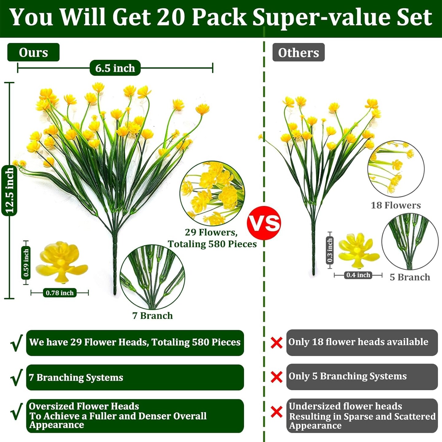 20 Bundles Artificial Flowers for Outdoors Fake Plants Summer Decor