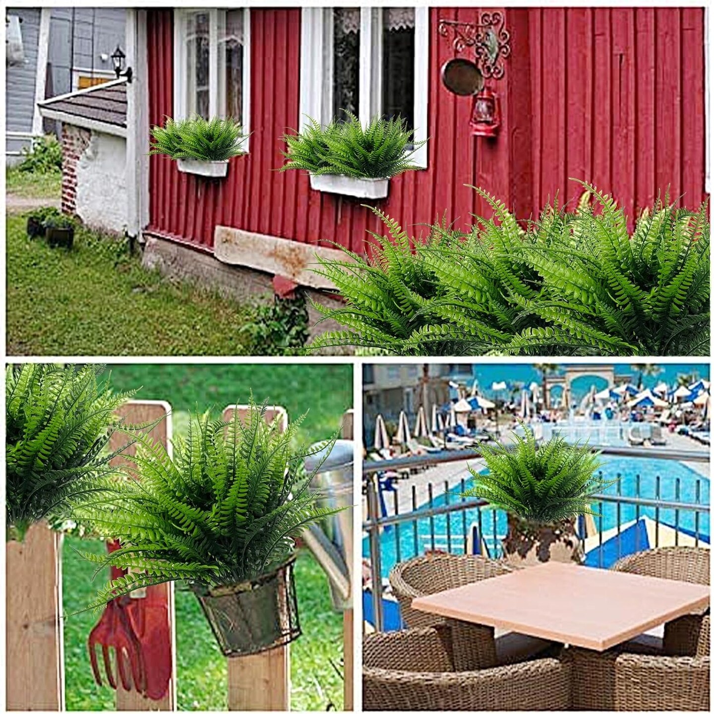 20 Bundles Artificial Plants Outdoor Faux Boston Fern Summer Decor Fake Plants UV Resistant Plastic Greenery Shrubs Artificial Fake Flowers Outside Indoor for Spring Home Gardens Patio Yards