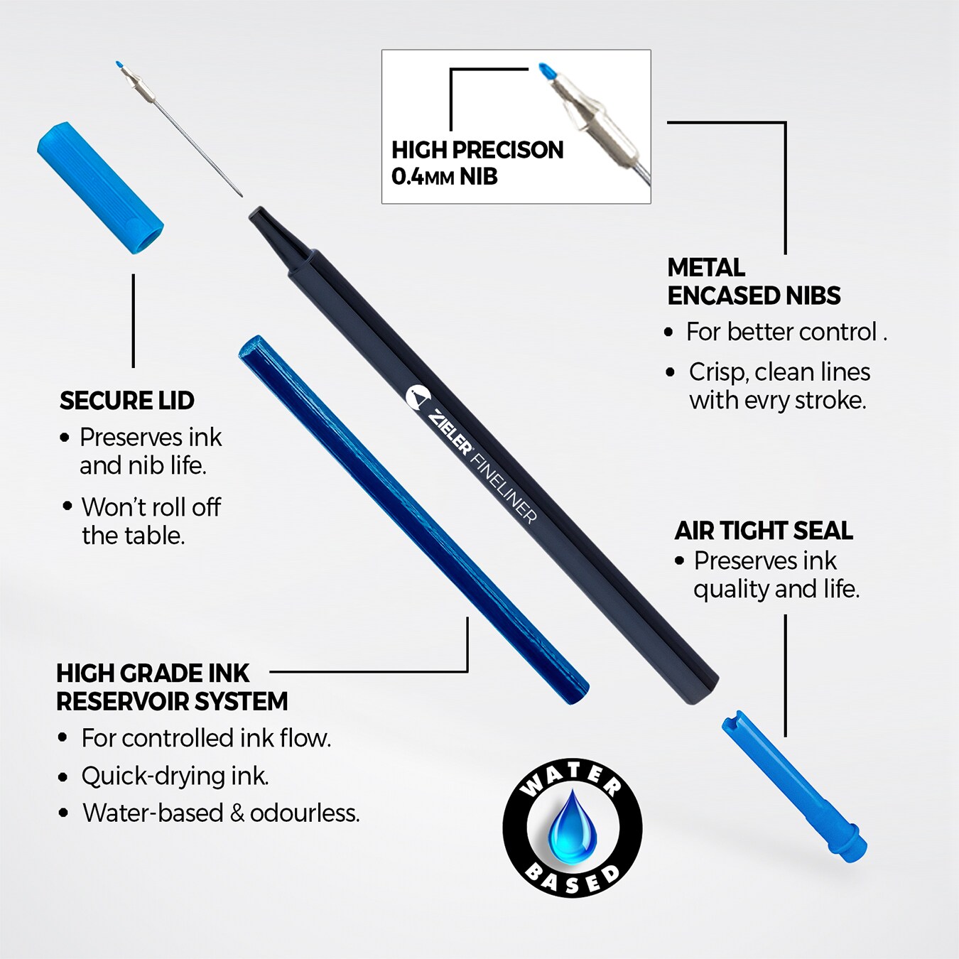 20 Colour Fineliner Pens Set 0.4mm Line Width Assorted Colours
