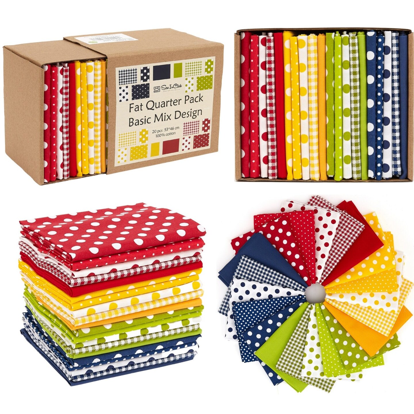 20 Fat Quarter Bundle -100% Cotton | Basic Mix Design - 20 pcs - Polka-dot 5 Patterns | Quilting & Crafting Fabric | Special Gift Set