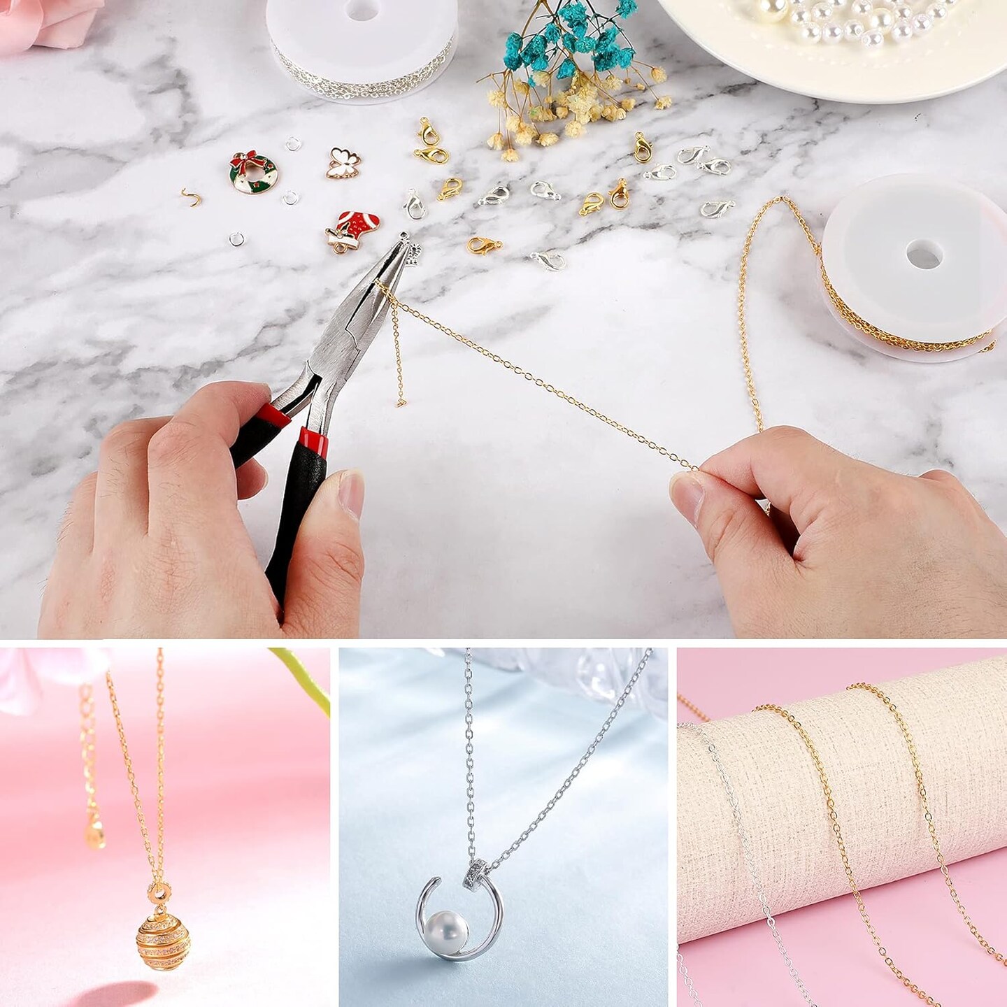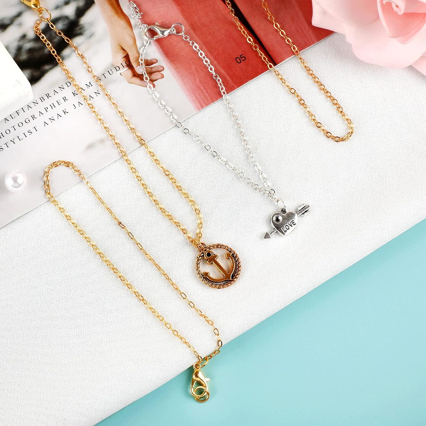 20 Feet Necklace Chains 1.8mm Jewelry Making Chains for Necklace Earring Bracelet Jewelry Making Supplies, Metal Chain Necklace with Lobster Clasps and Jump Rings for DIY Craft, Silver & Gold