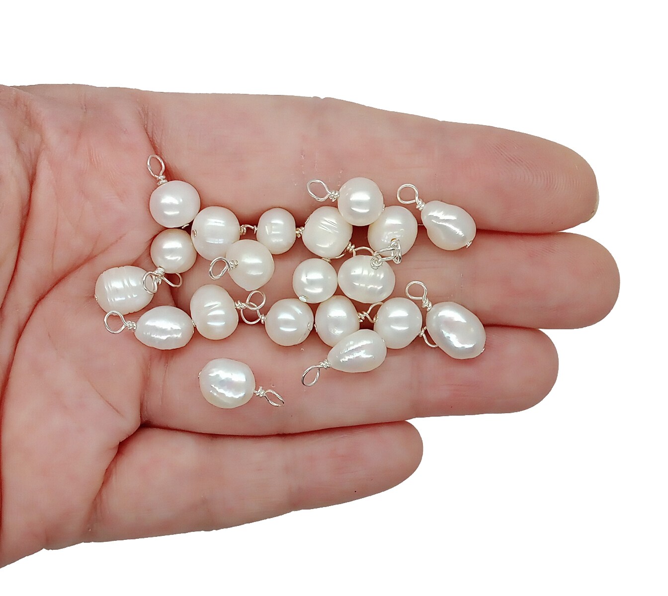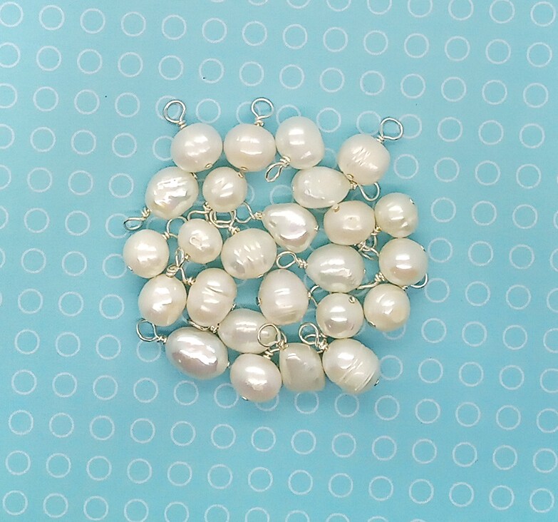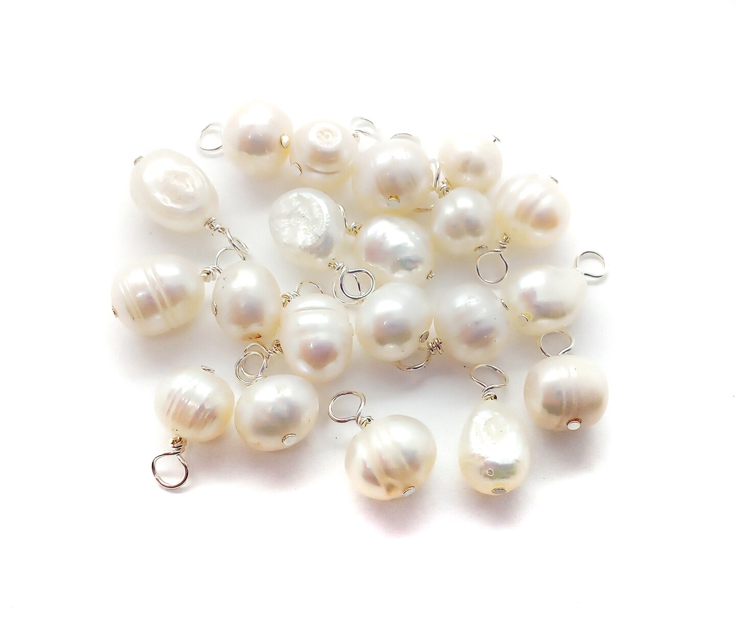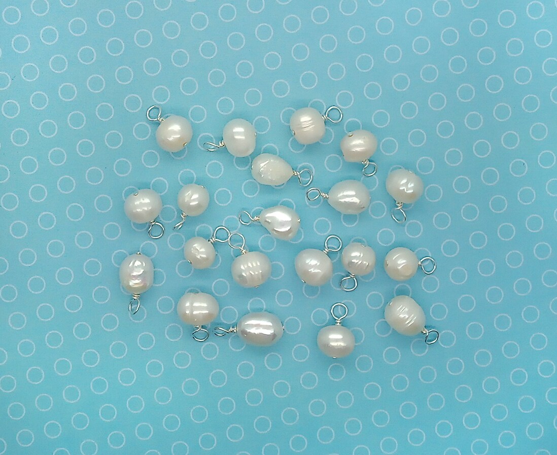 20 Freshwater Pearl Dangles, Pearl Charms with Wire Wrap, Adorabilities