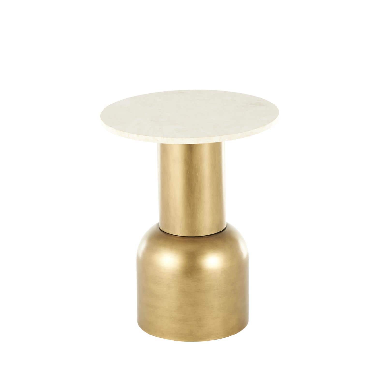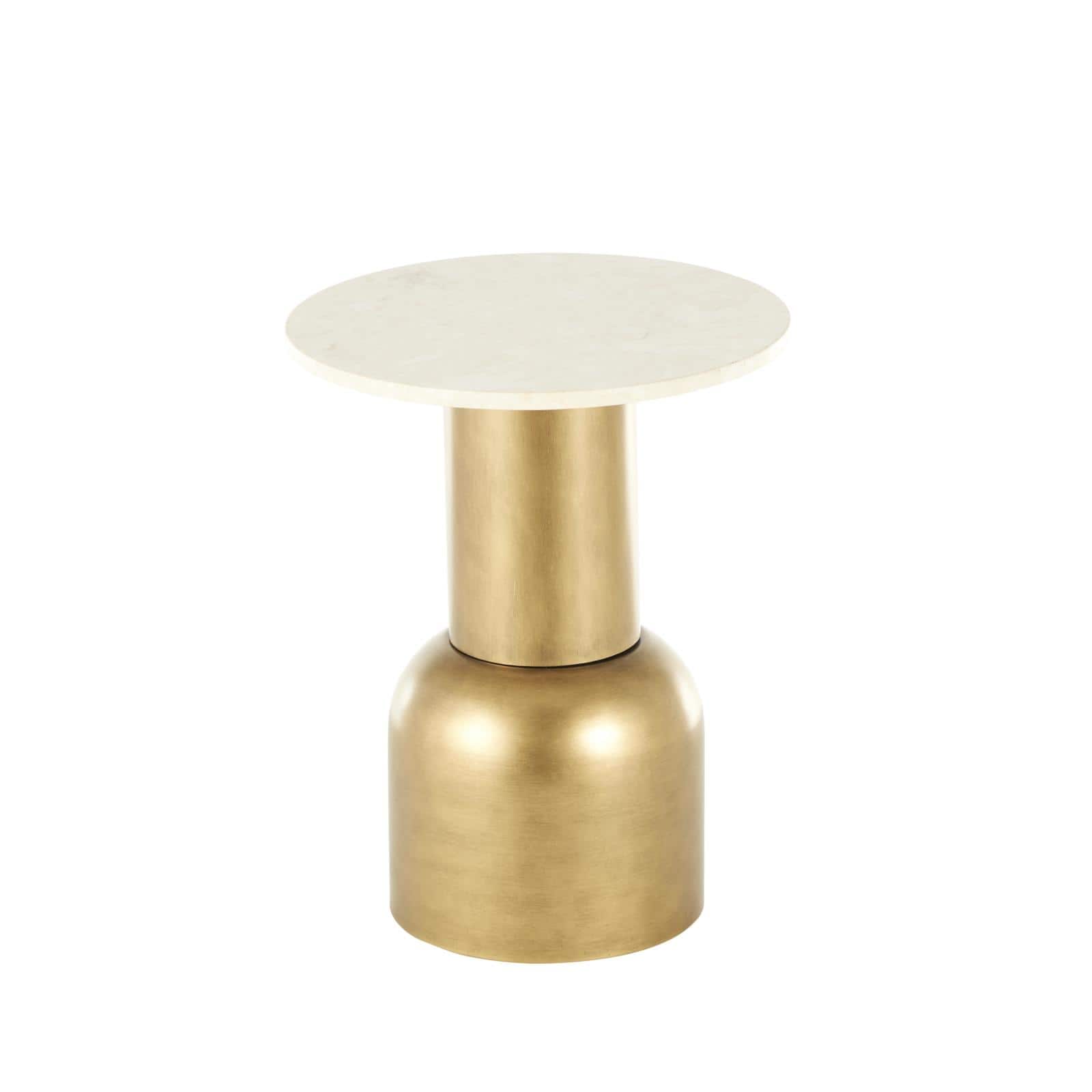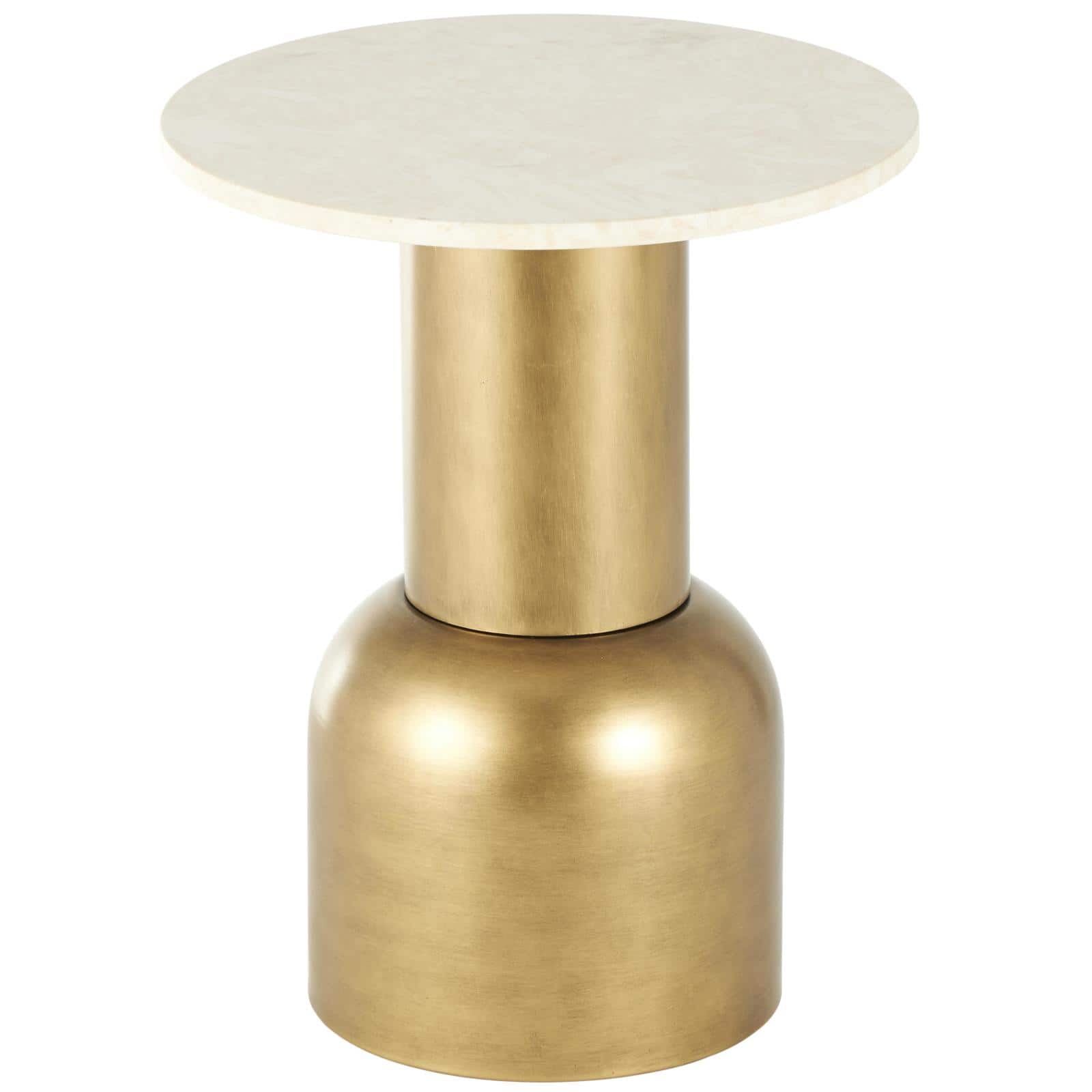 20" Gold Metal Pedestal Accent Table with Cream Marble Tabletop