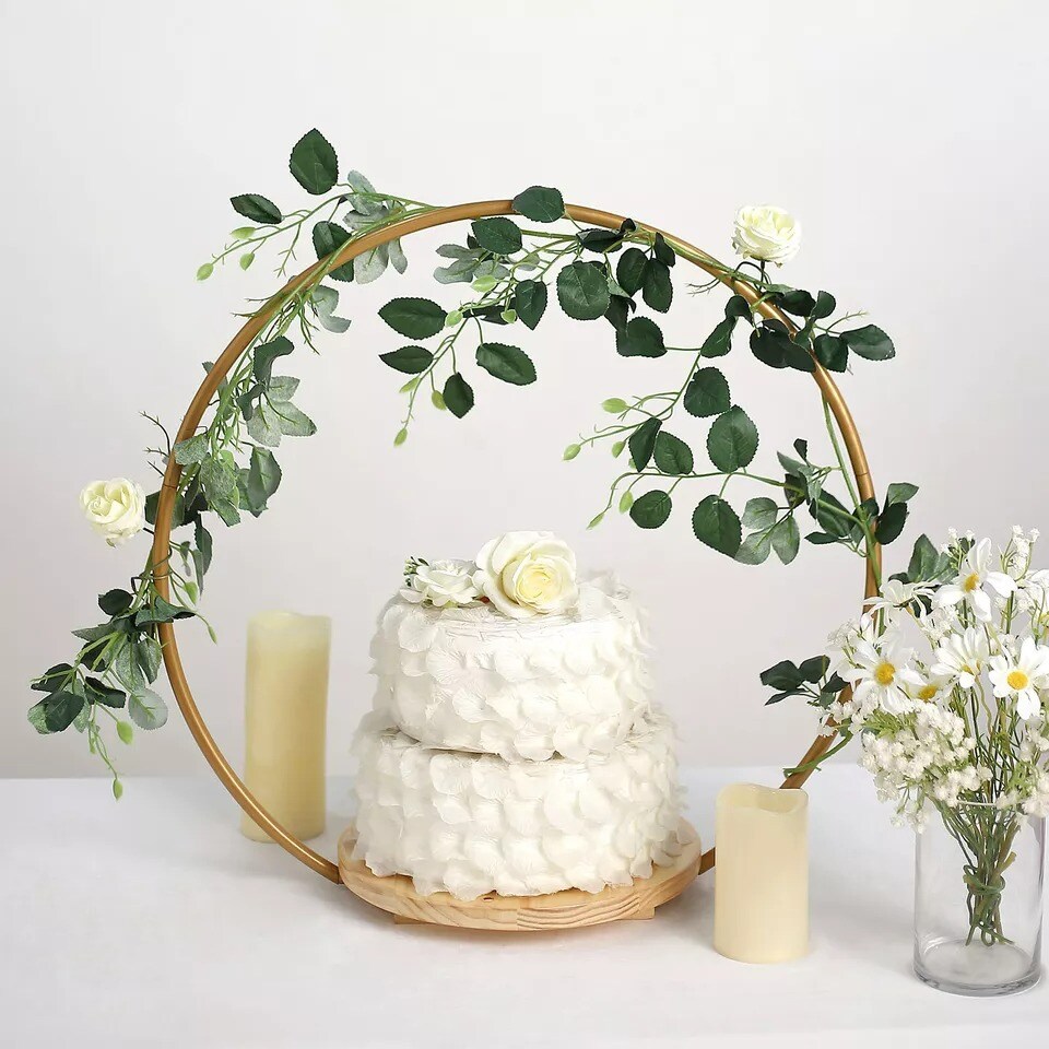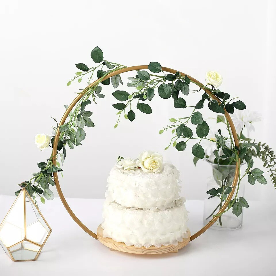 20" Gold Wood with Round Geometric Metal Arch Cake Stand Party Event Decorations