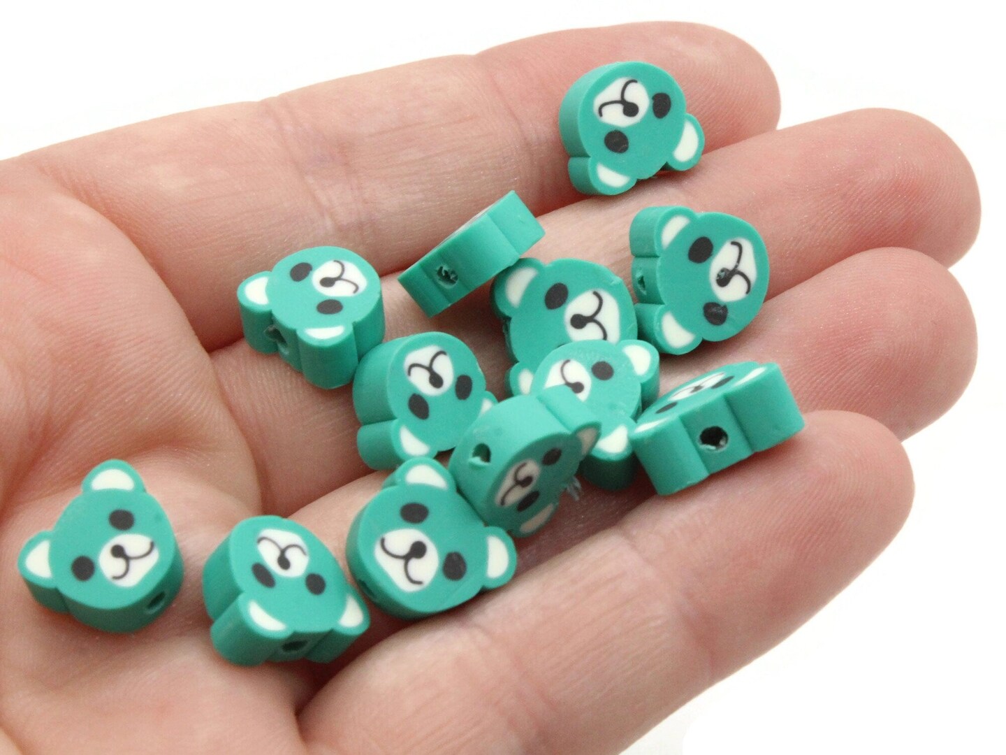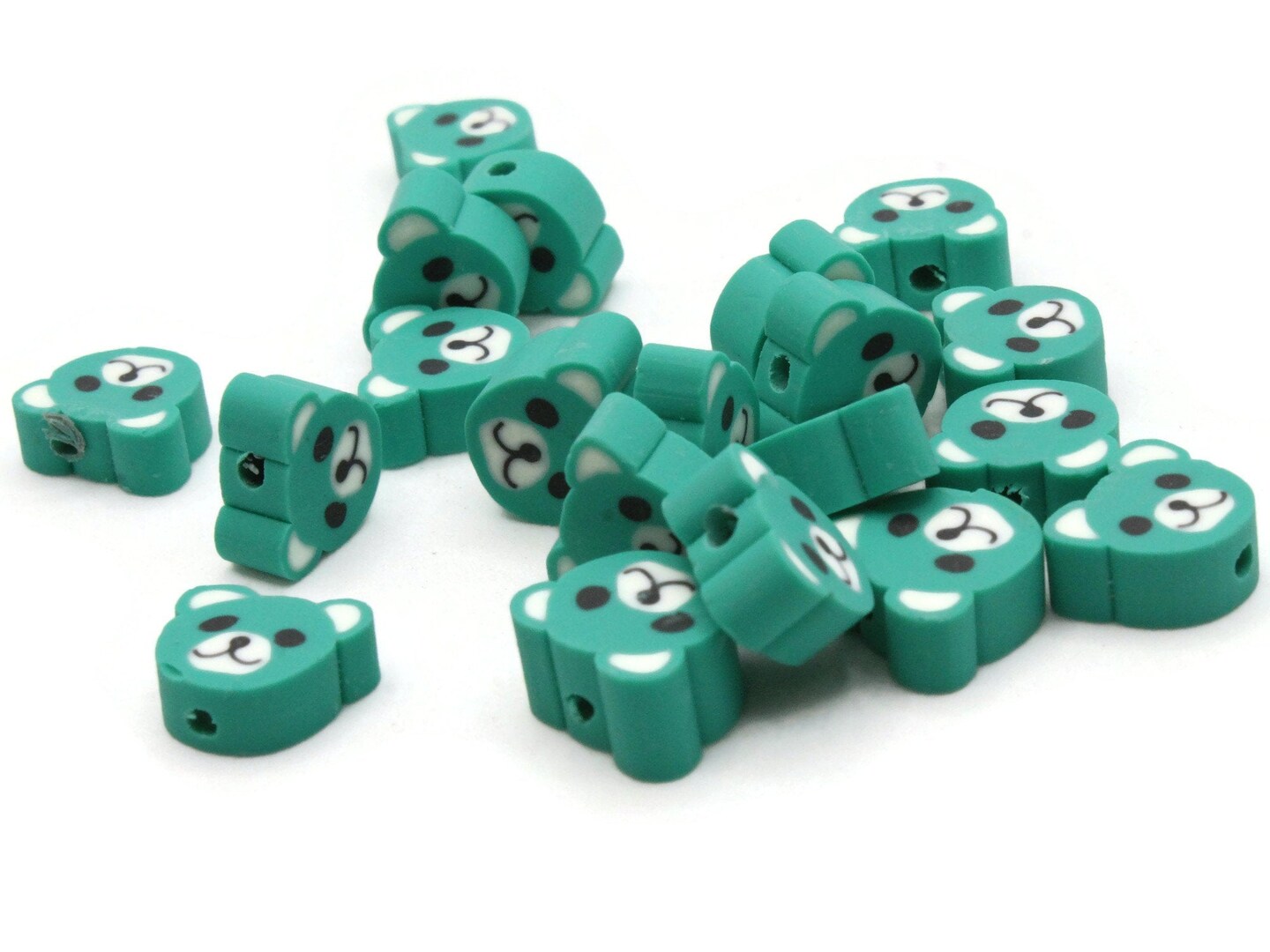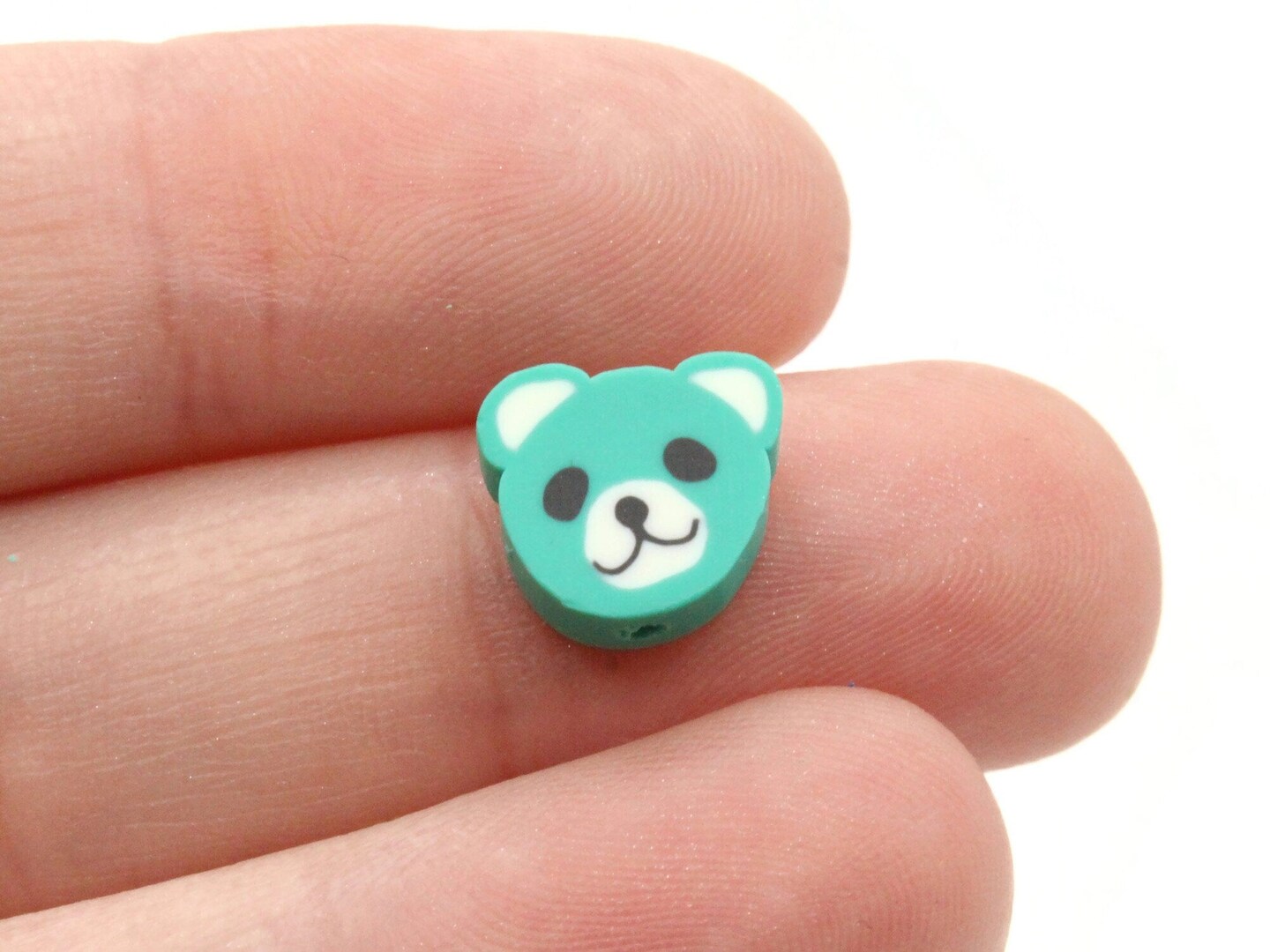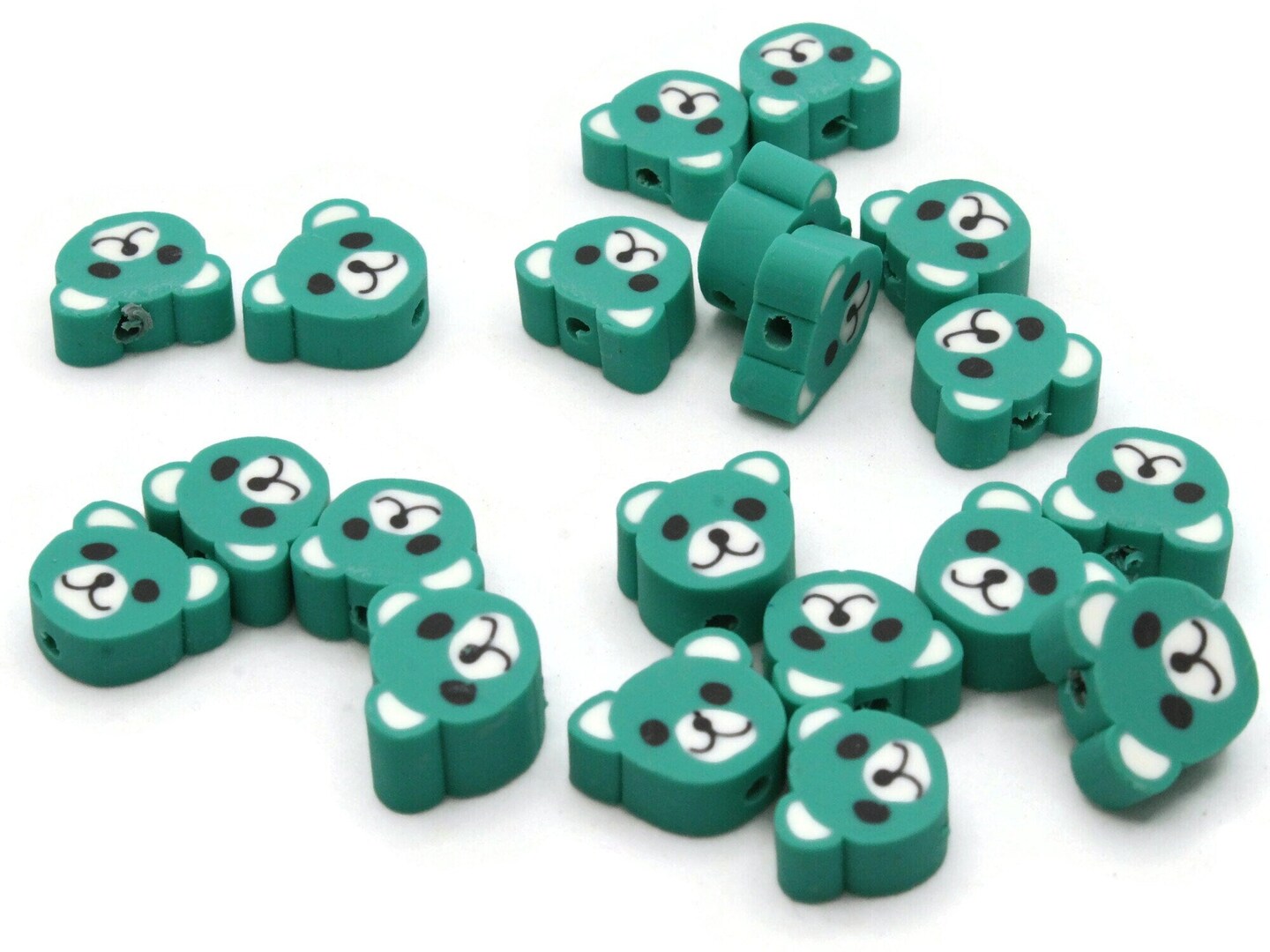 20 Green Bear Head Miniature Animal Polymer Clay Beads