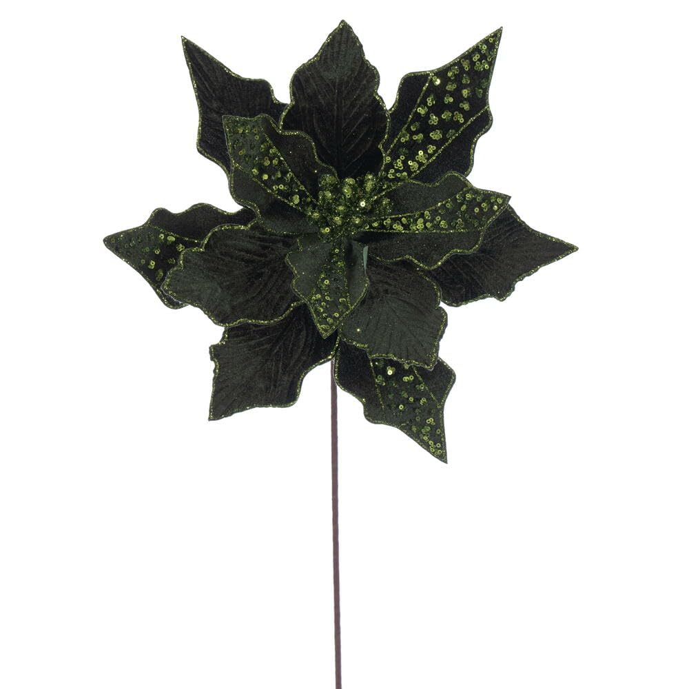 20" Green Velvet Striped 10" Flower 3/Bg