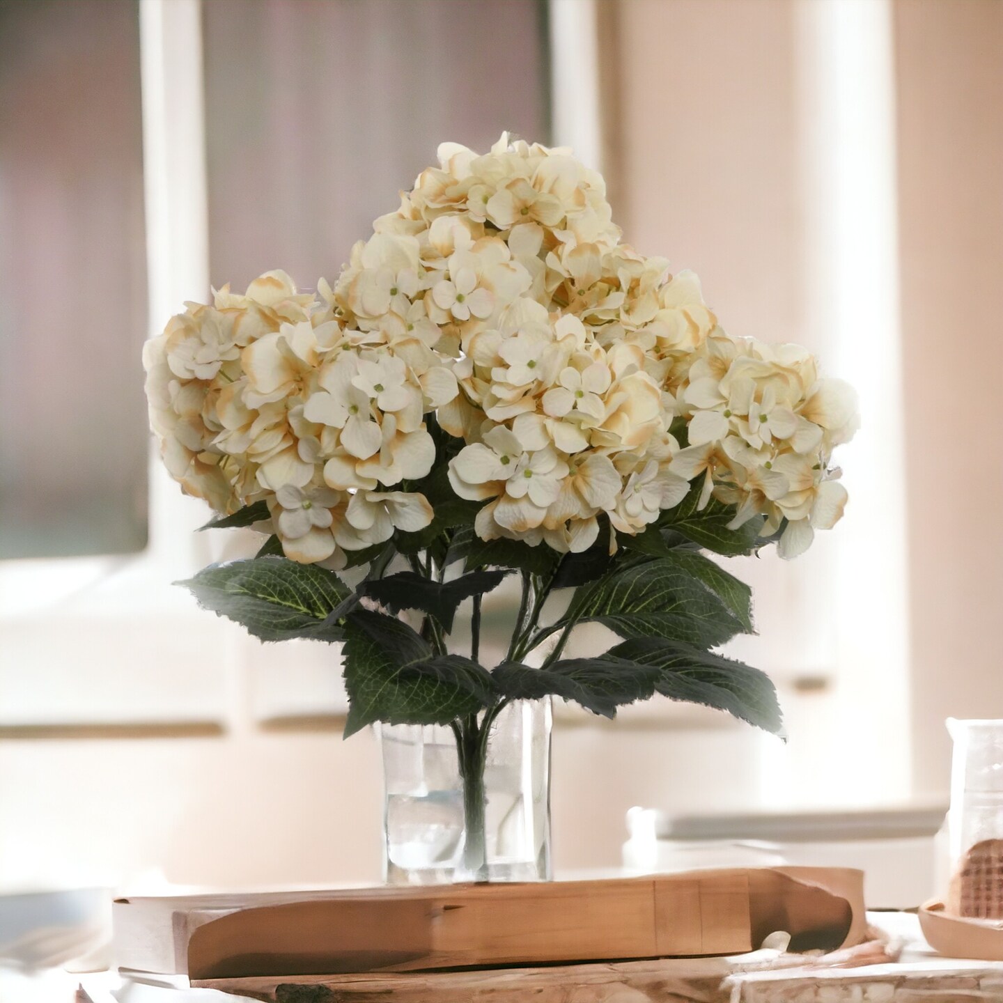 20" Hydrangea Bush - 7 Silk Flowers with Lifelike Leaves, Artificial Greenery, Perfect for Home, Office & Wedding Décor - Spring & Year-Round Accent, Floral Home by Artificial Flowers