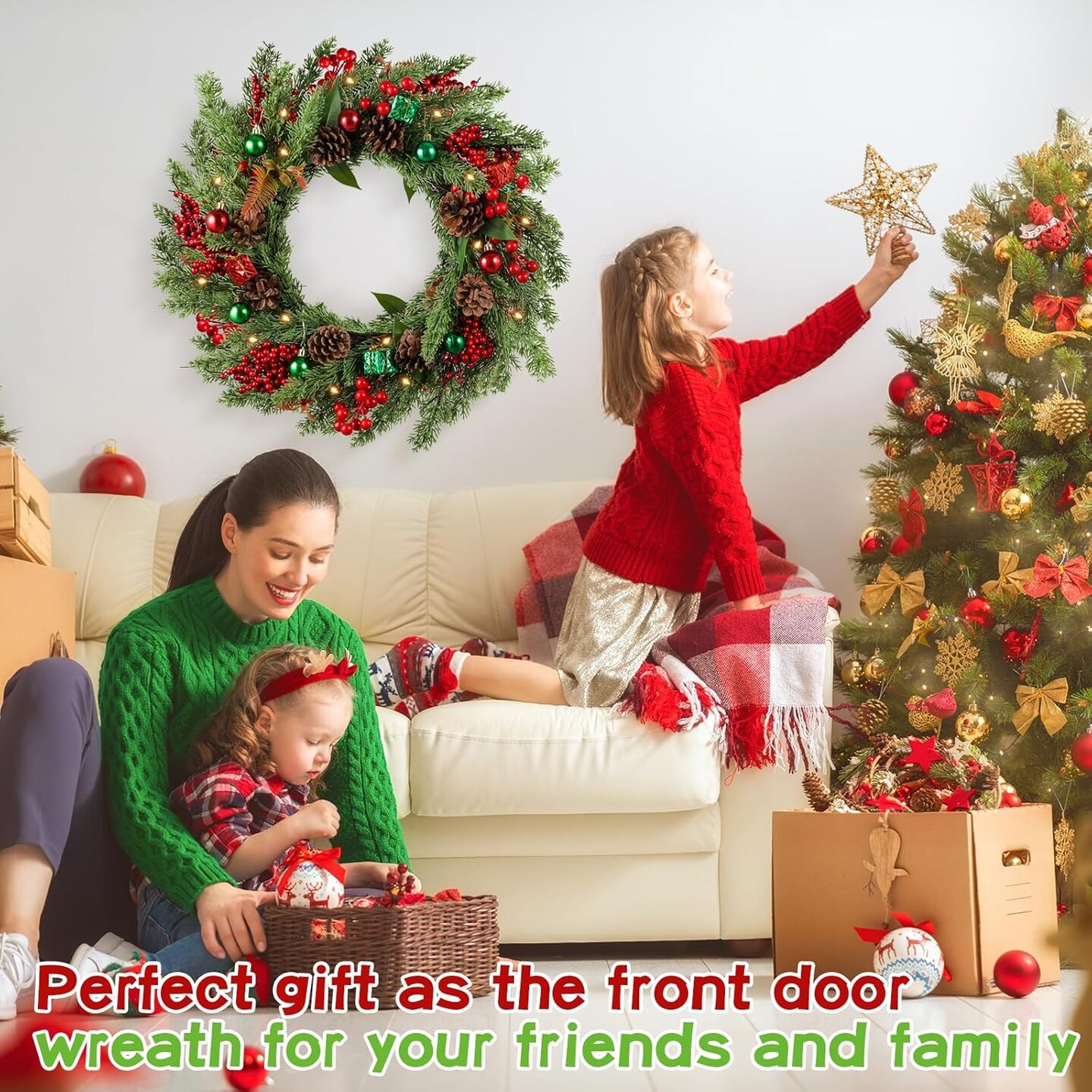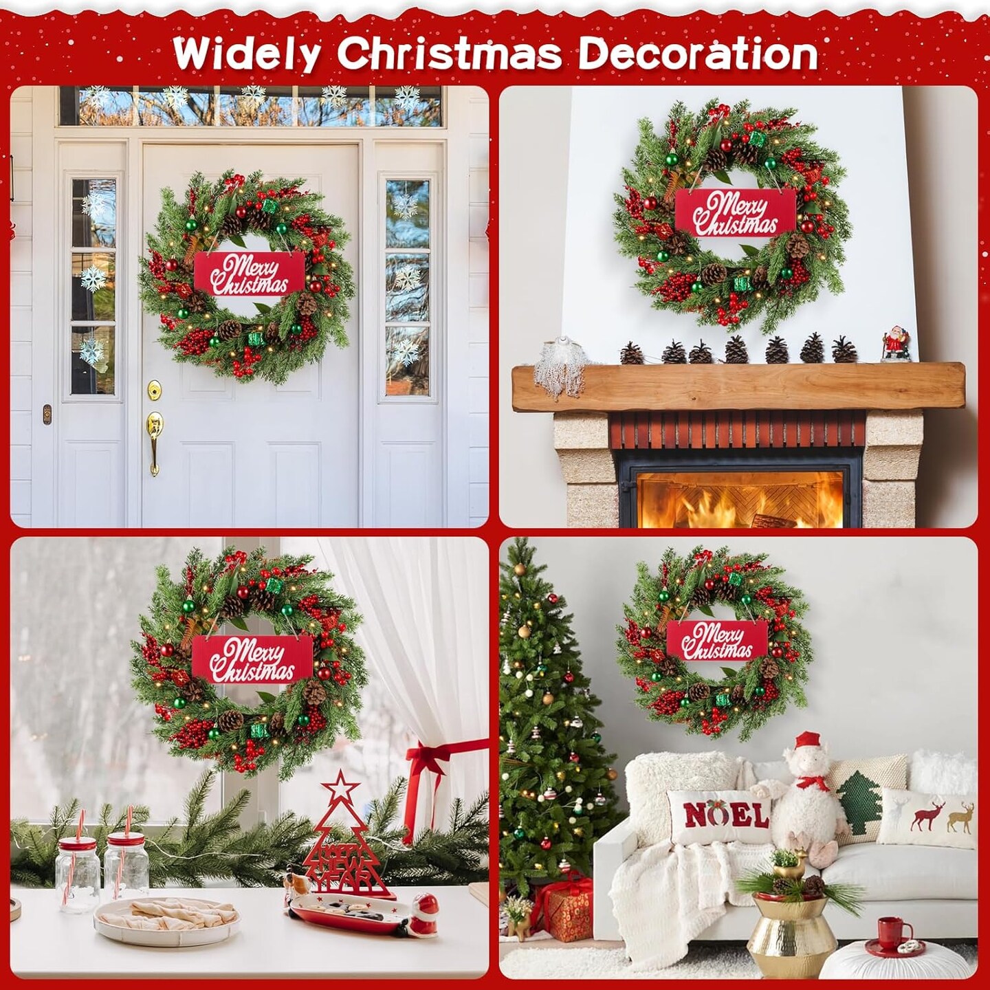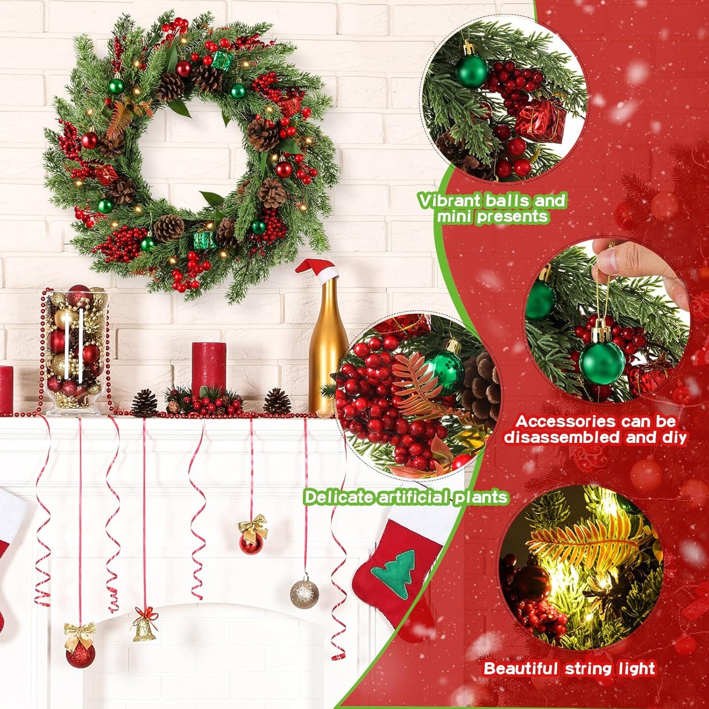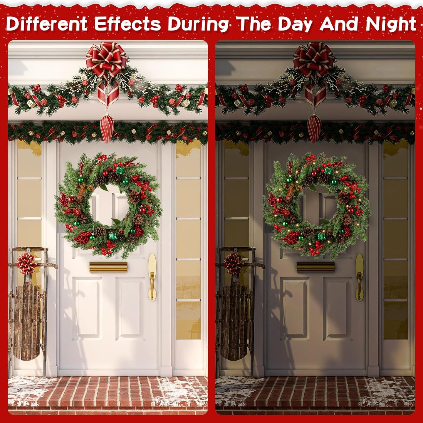20 inch Artificial Christmas Wreath with LED String Lights for Front Door (Green,White) 19.6"D x 19.6"W x 19.6"H