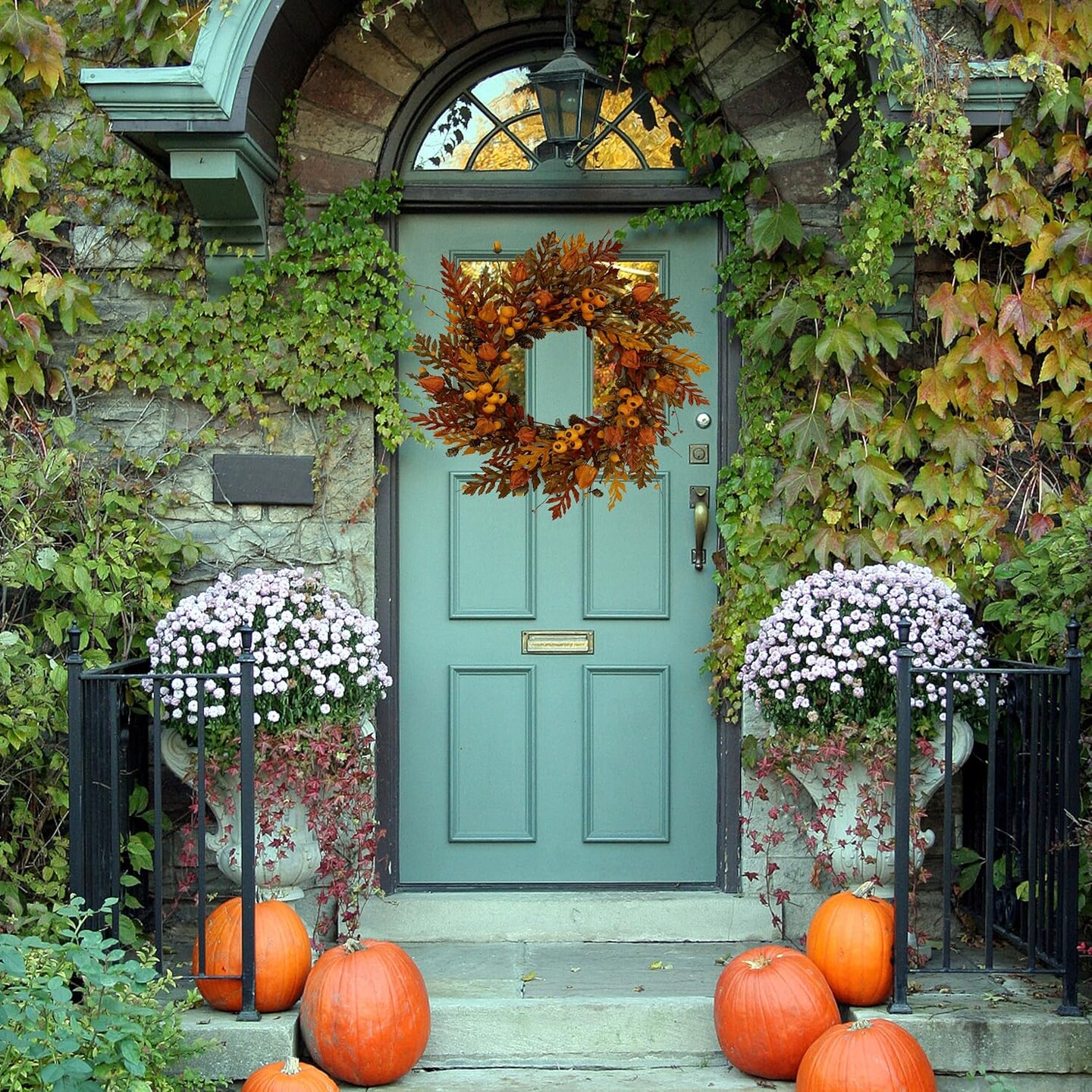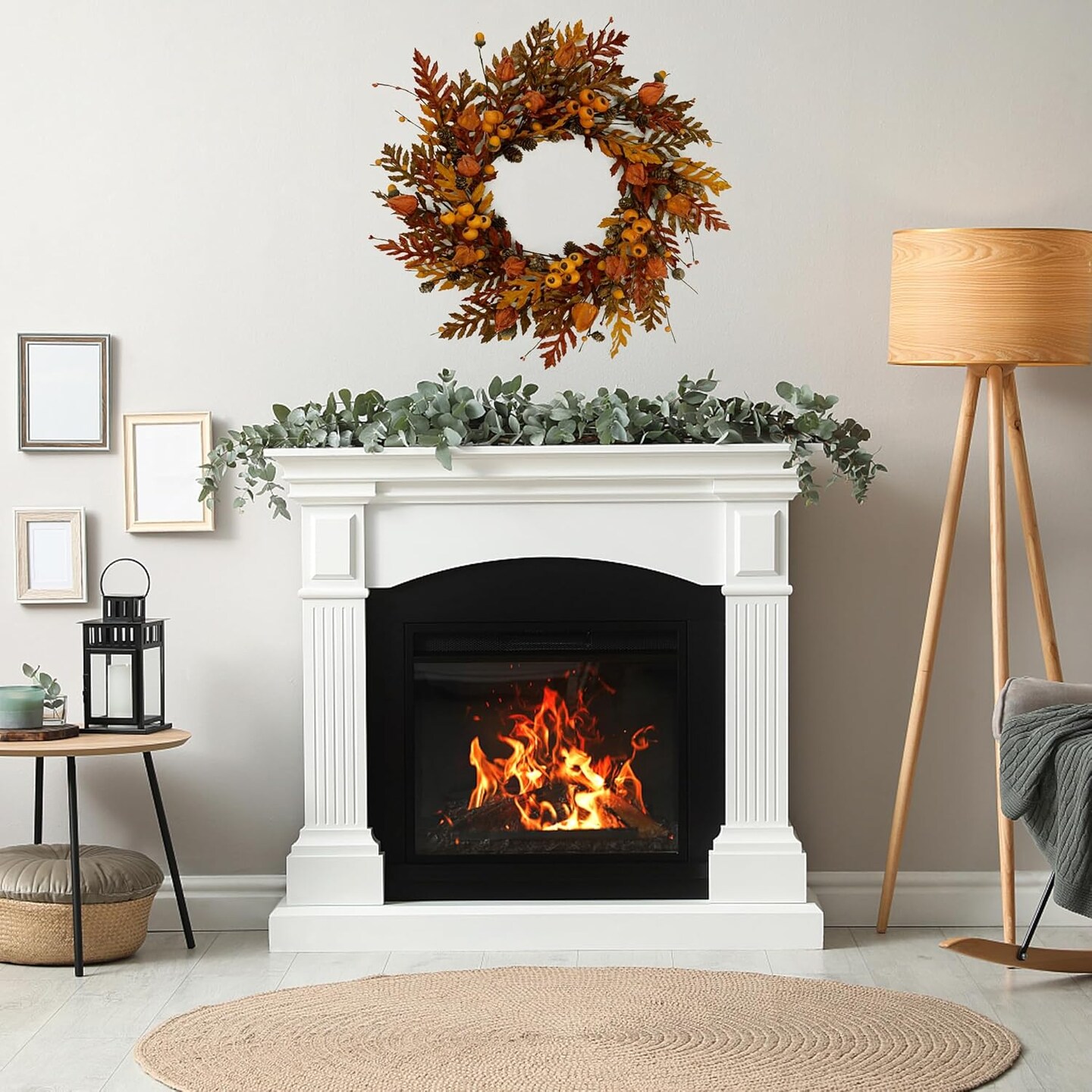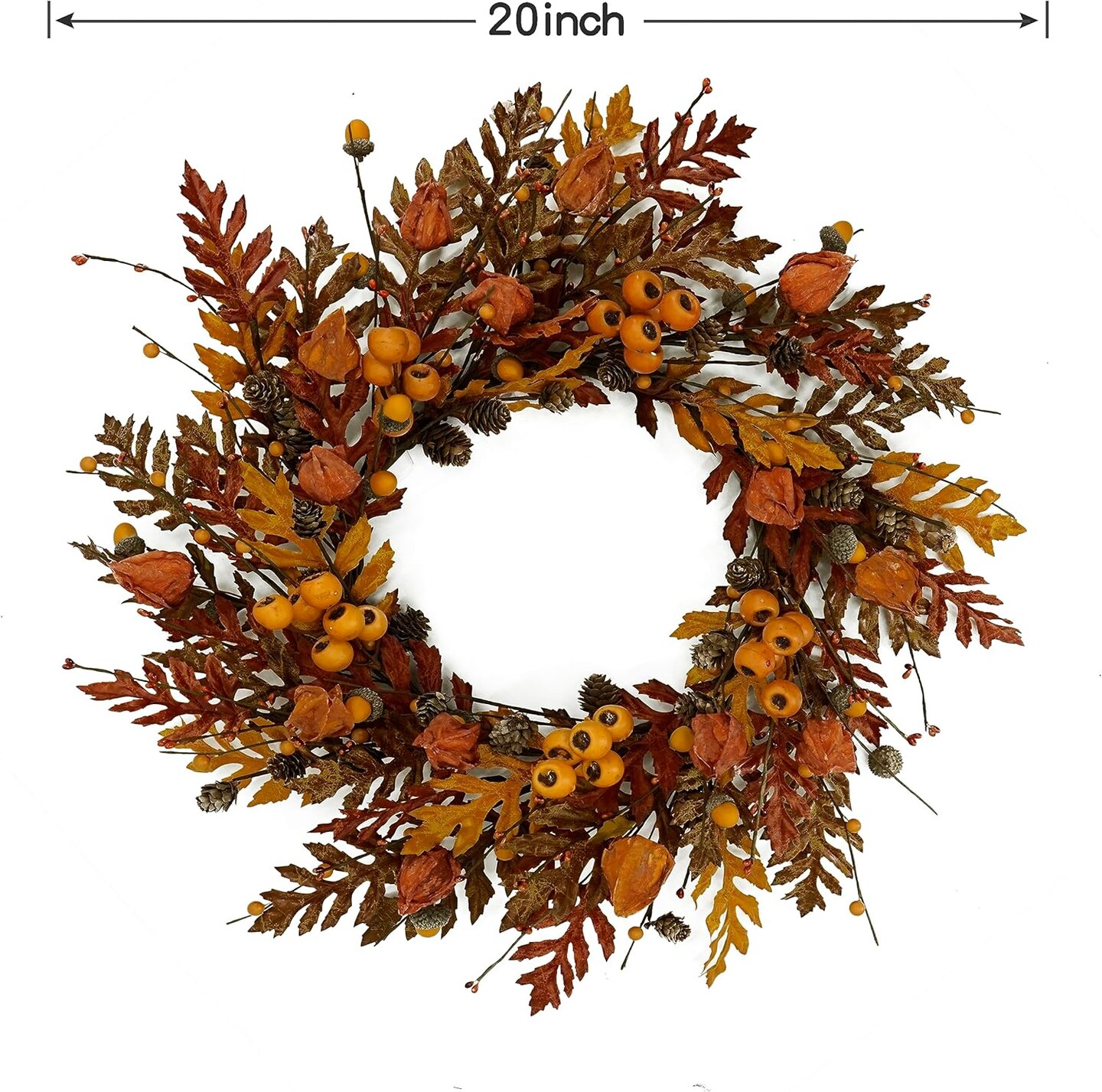 20 inch Fall Wreath Autumn Oak Leaves Wreath with cape gooseberry, oak leaf, acorn, berry, and pine cone for front door farmhouse indoor outdoor festival home decor