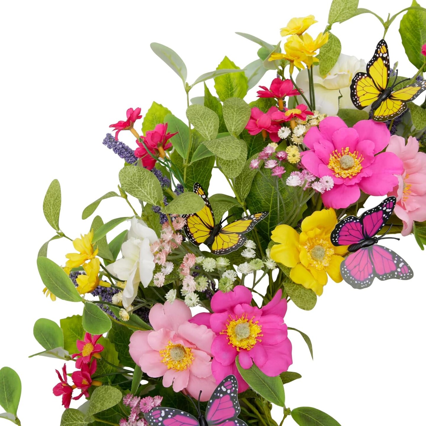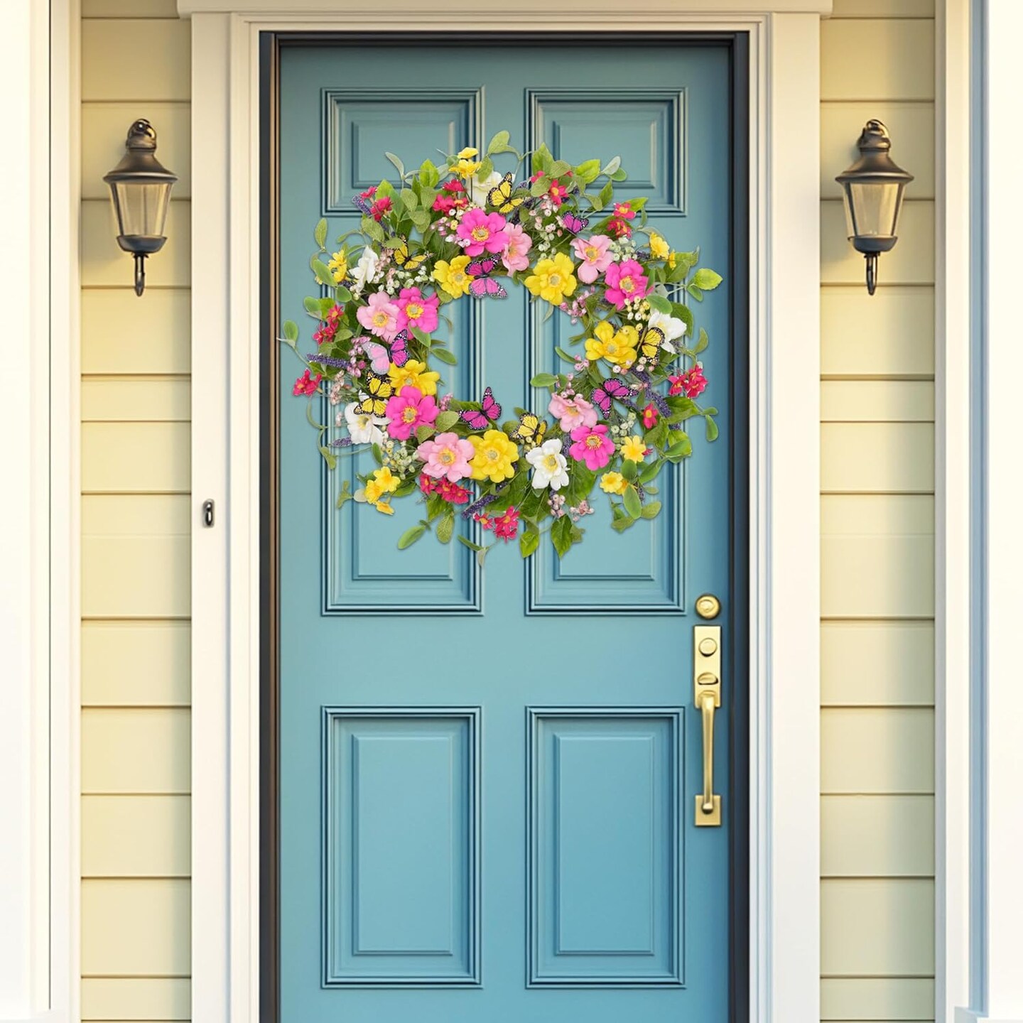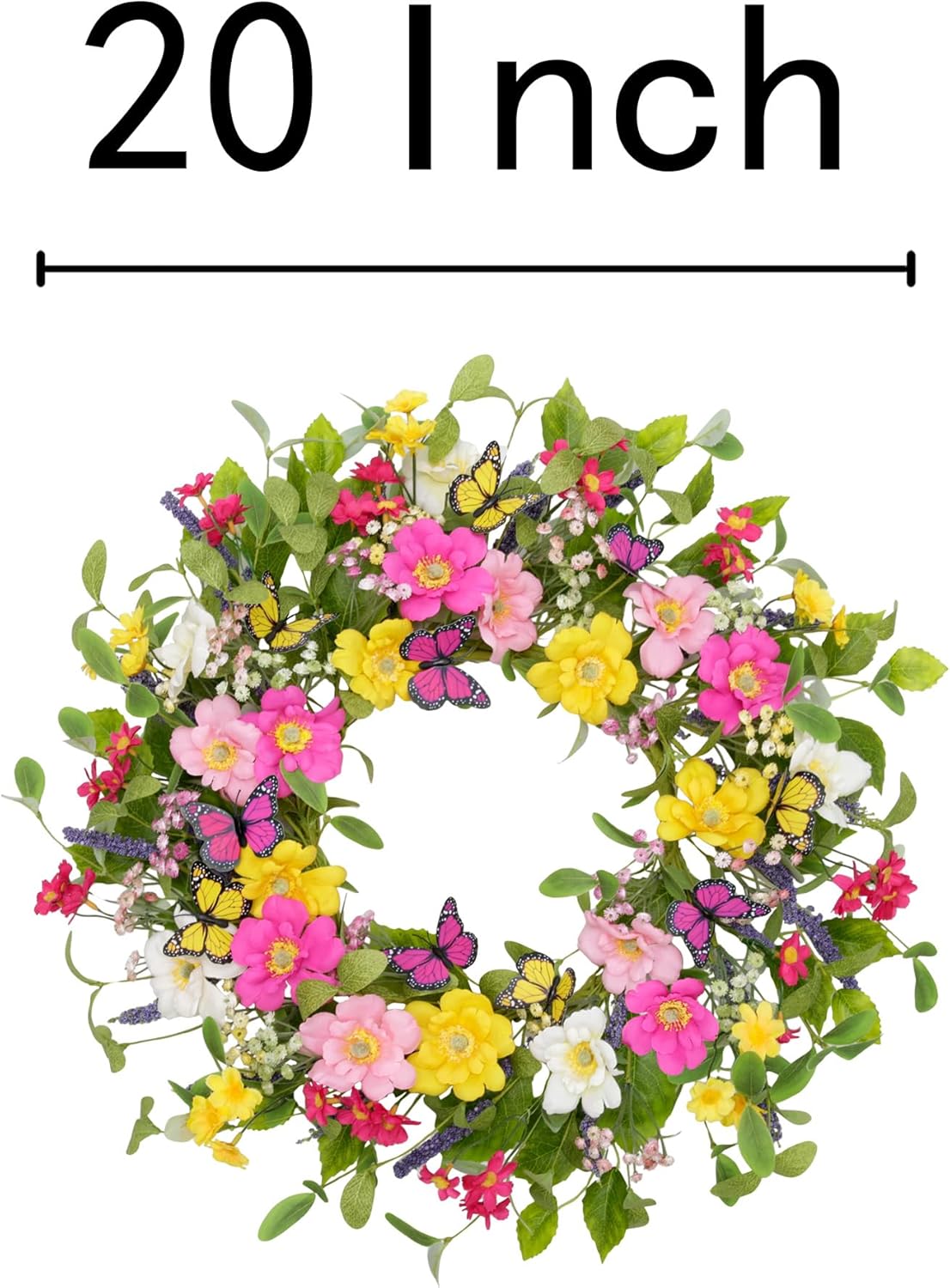 20 inch Spring Wreath for Front Door Summer Door Wreath Artificial Floral Wreath Greenery Wreath Home Decorations Indoor Outdoor Farmhouse