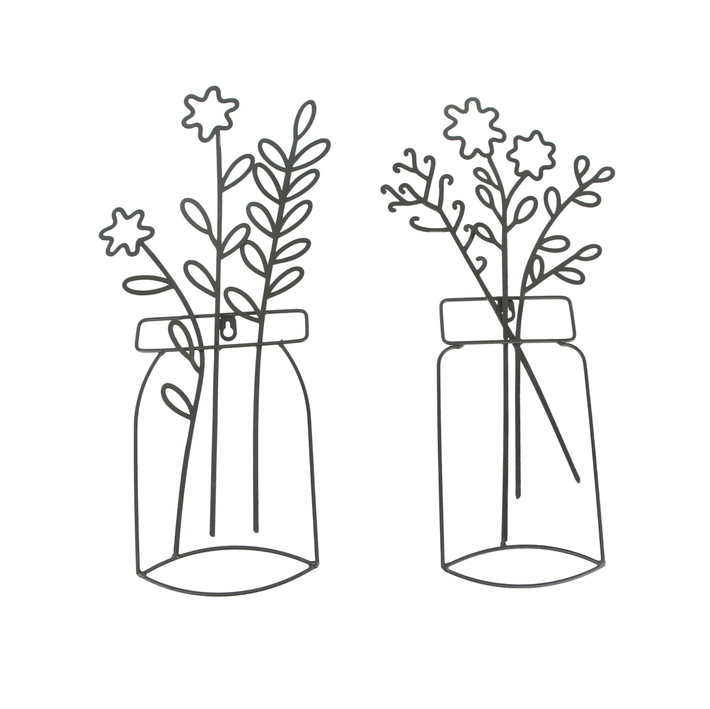 20 Inch Wire Metal Flower Sculpture Wall Hanging Art Home Decor Plaques Set of 2