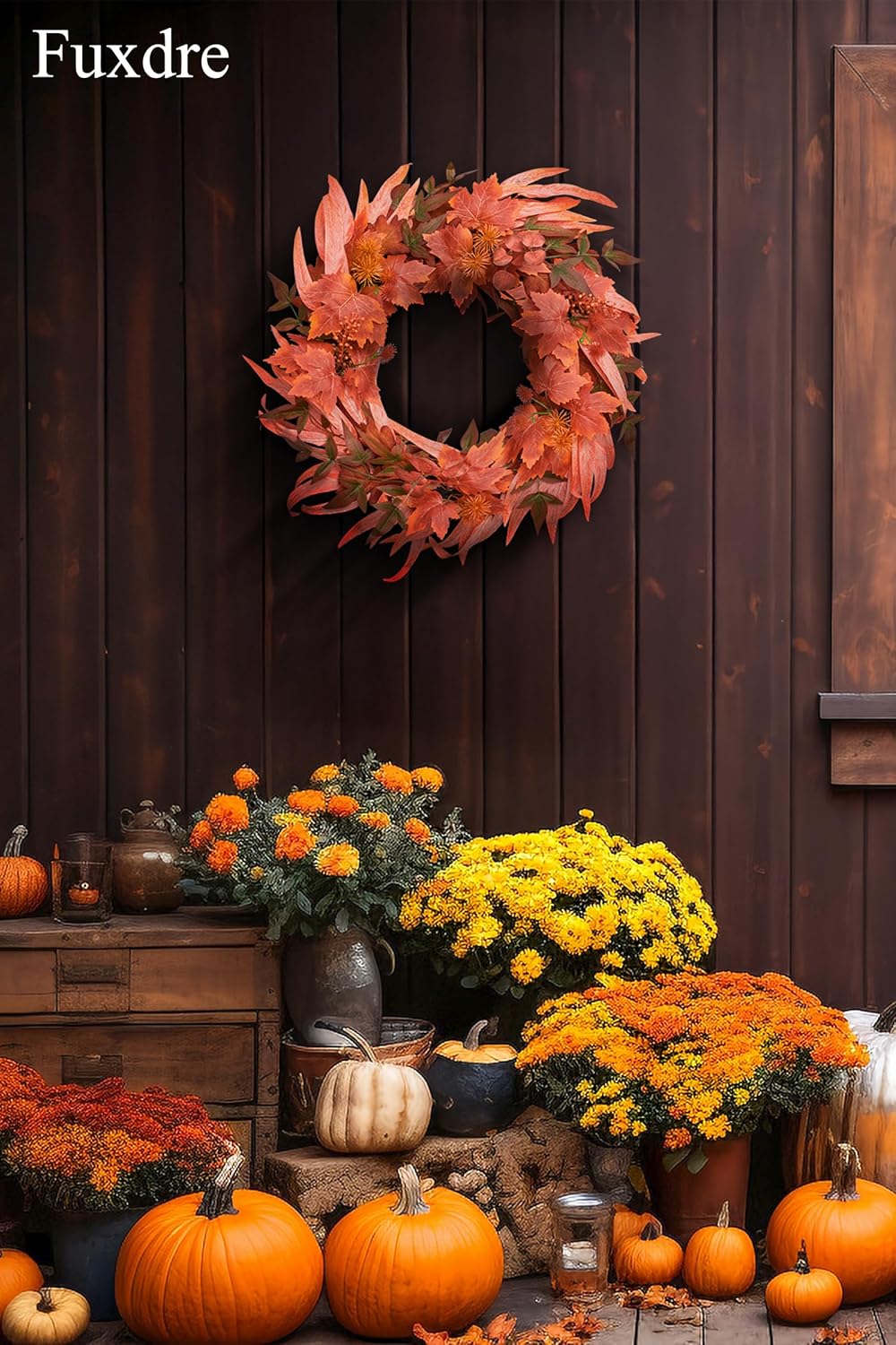 20” Lifelike Fall Wreath for Front Door – Autumn Harvest Decor with Maple Leaves & Berries for Porch, Farmhouse, Halloween & Thanksgiving