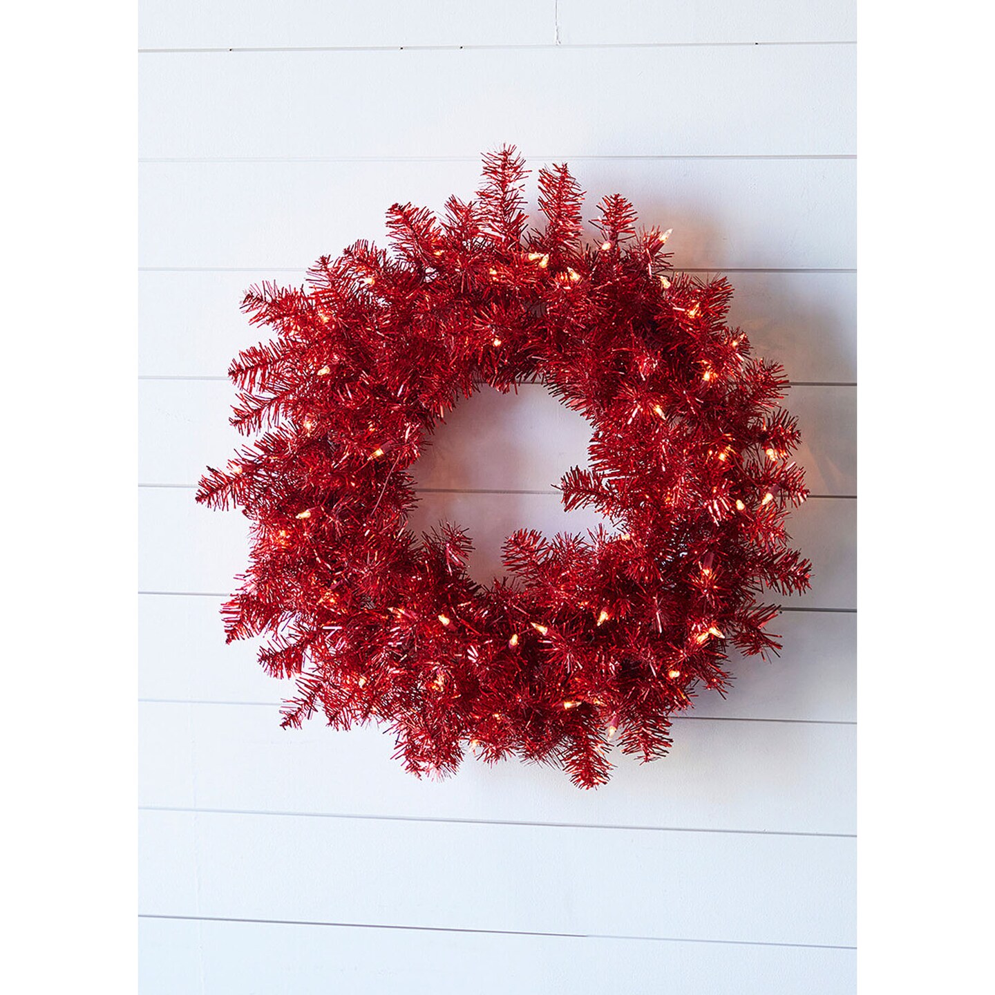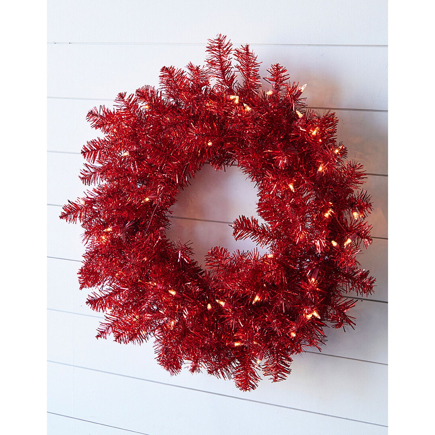 20” Lighted Red Wreath Pre-Lit Artificial Wreath for Holiday, Wall, or Door Décor