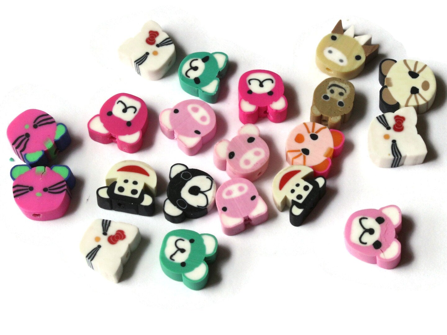 20 Mixed Animal Head Beads Assorted Polymer Clay Beads Cute Zoo Beads
