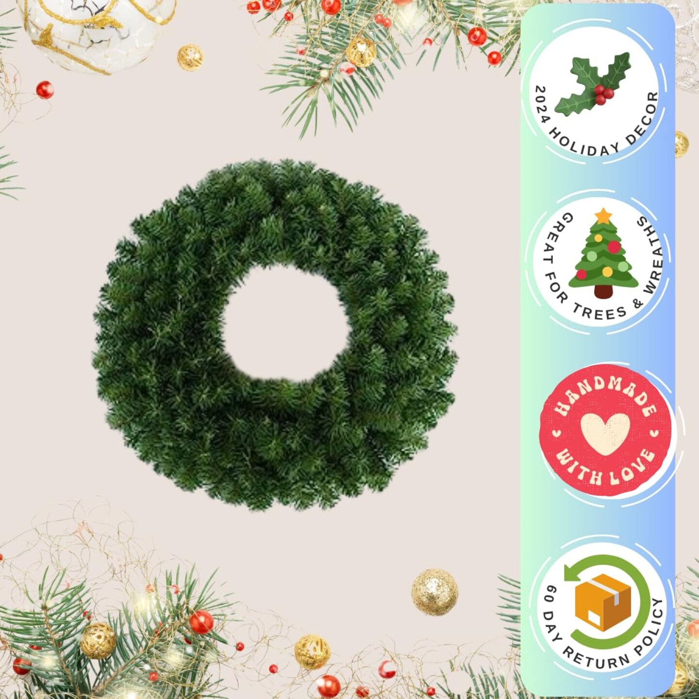 20" Northern Spruce Wreath with 200 Tips - Set of 6, Lush Holiday Decor, Ideal for Christmas Displays & Arrangements - Perfect for Home, Office - 2024 Christmas Collection, Floral Home by Artificial Flowers