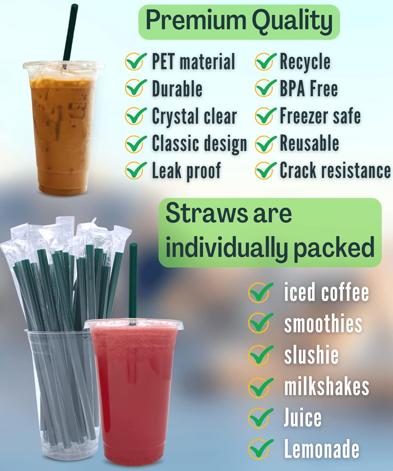 20 oz Clear Plastic Cups with Lids and STRAWS, Disposable Drinking Cups for Cold Drinks, Iced Coffee, Milkshakes, Smoothies, 25 Sets