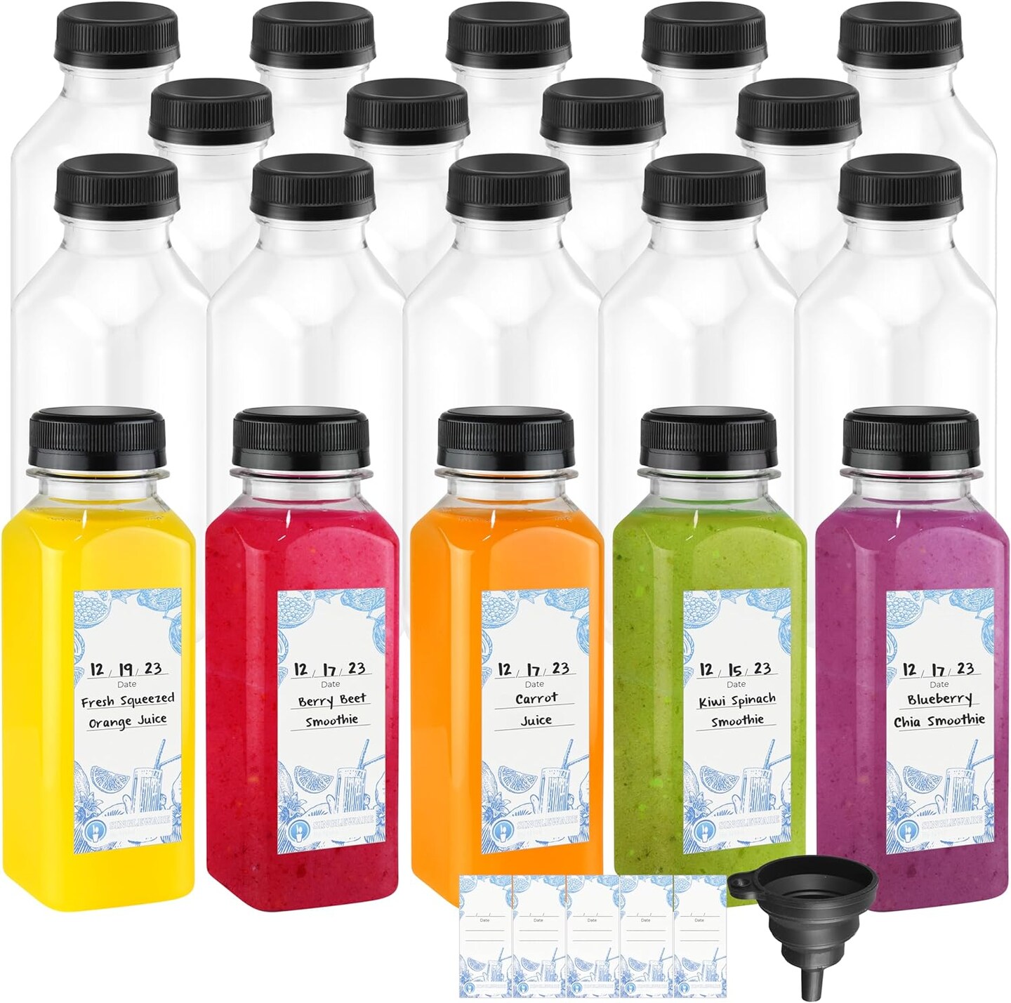 20 Pack 16 oz Clear Plastic Juice Bottles