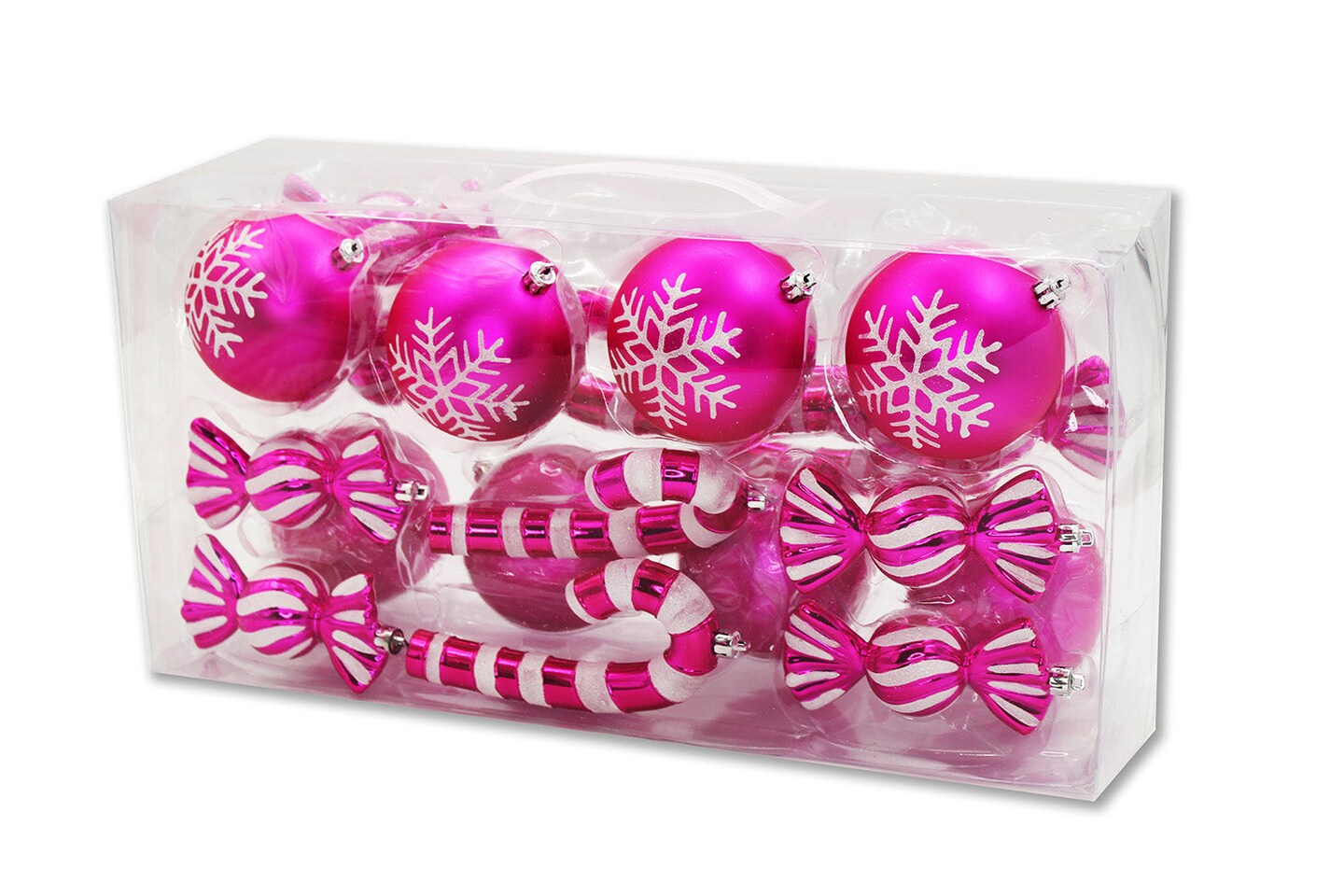 20 Pack Hot Pink and White Assorted Ornaments