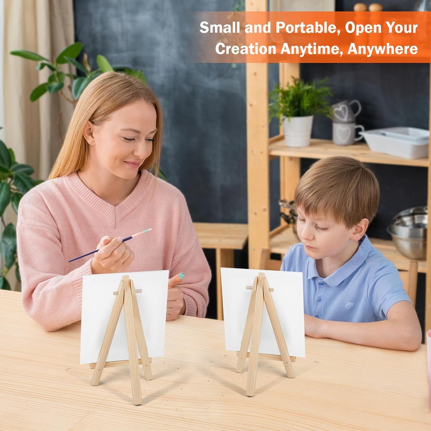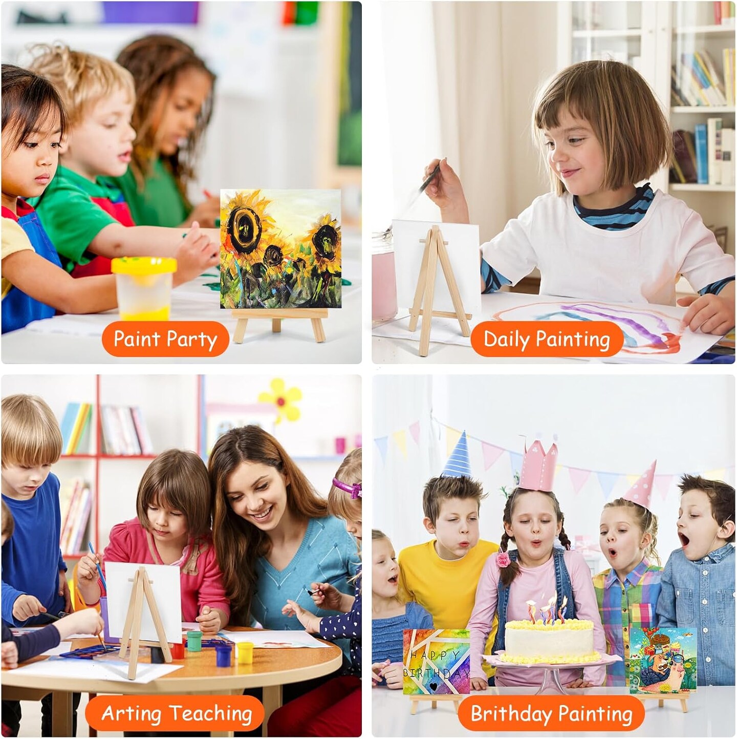 20 Pack Mini Canvases, 6x6in Small Painting Canvas Panel with Mini Easel, Art Canvas Painting Kit with 10 Brushes & 5 Paint Tray for Kids Teenagers Acrylic Pouring Oil Water Color Gift