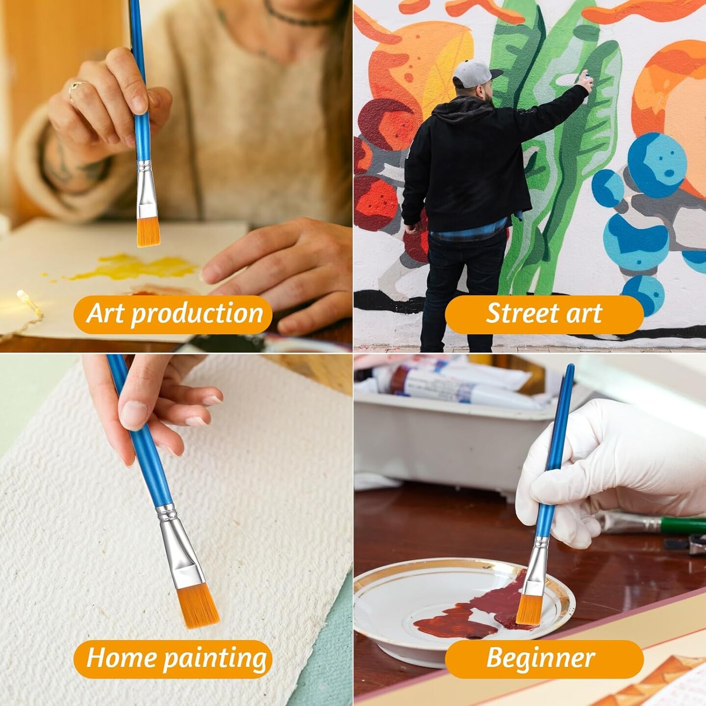 20 Pcs 3/4 Inch Flat Paint Brushes, Acrylic Brush Wide Synthetic Bristles Paintbrushes Small Watercolor Brushes Bulk Craft Paint Brush with Wooden Handle for Detail Art Painting Oil