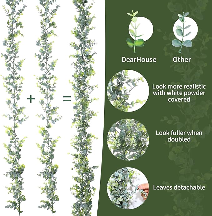 20 Pcs 5.9ft Artificial Eucalyptus Garland Greenery Eucalyptus Leaves Vines Faux Silk Silver Dollar Eucalyptus Vines Plants for Wedding Party Tables Centerpieces Backdrop Arch Wall (Stylish Style)