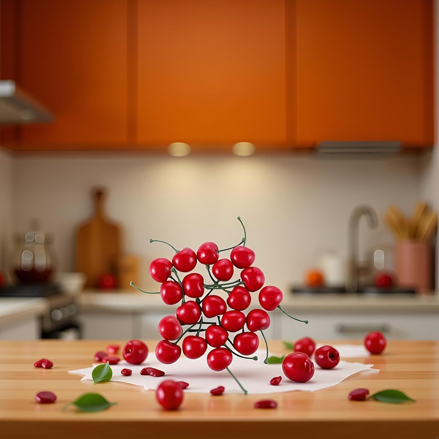 20 Pcs Red Artificial Cherries,Fake Cherries,Fake Fruit Decor Simulation Cherry