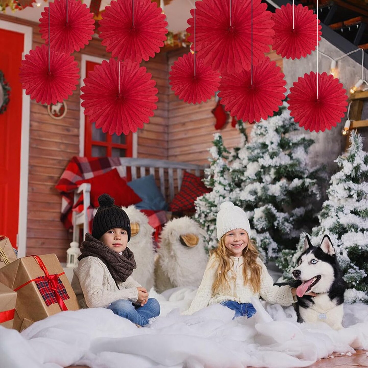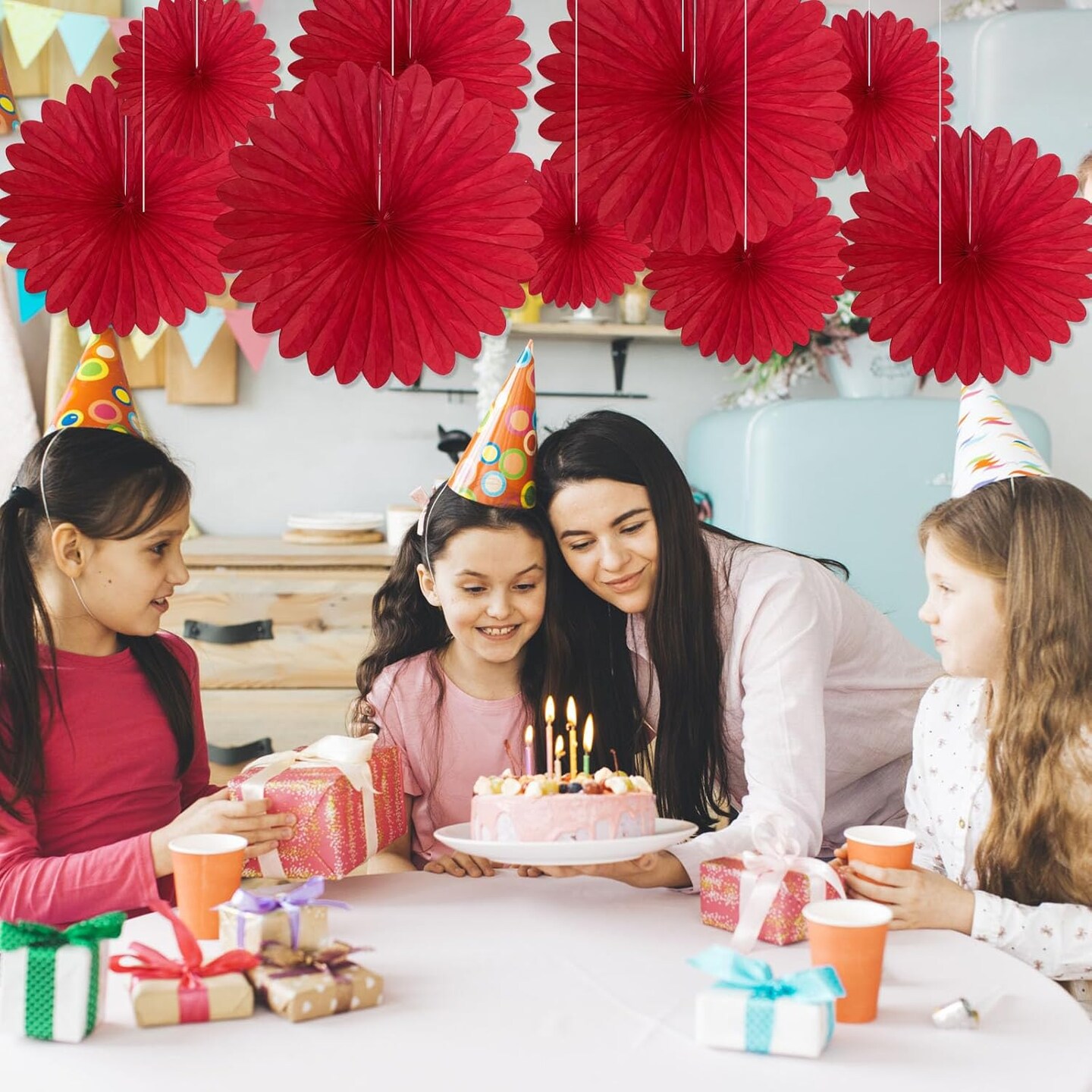 20 Pcs Red Hanging Paper Fan