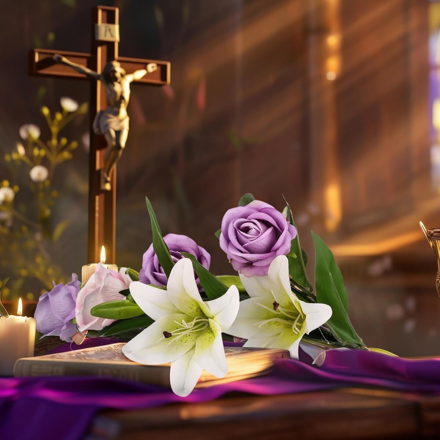 20 Pcs Summer Bouquets Artificial Flowers Velvet Realistic Roses and Latex Easter Lilies Flowers Bouquet Decorations Arrangements