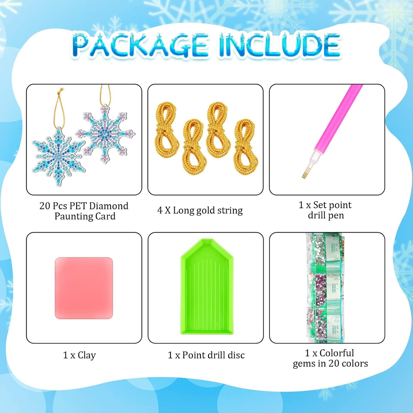 20 Pcs Winter Christmas Snowflakes Diamond Painting (Blue,Elegant)