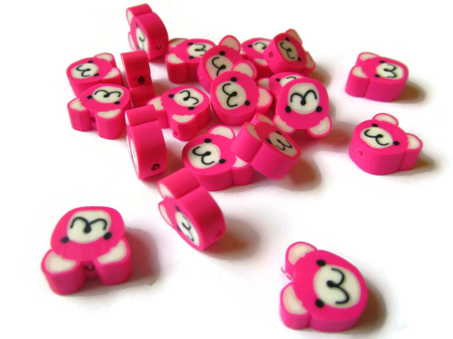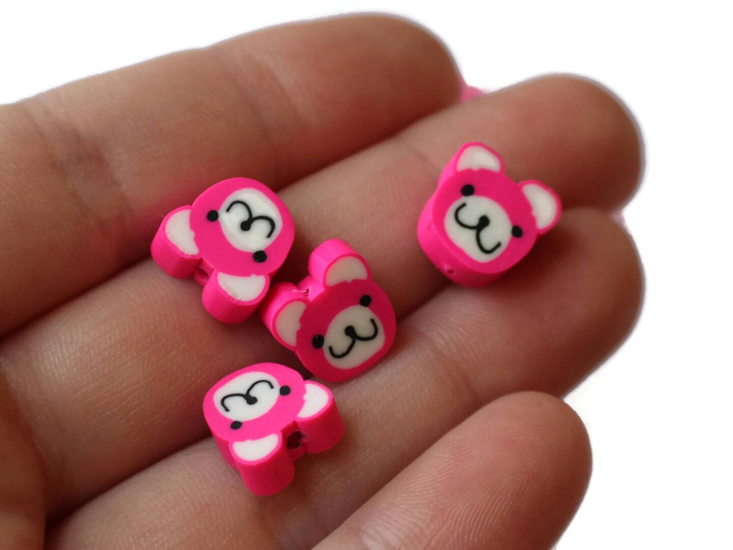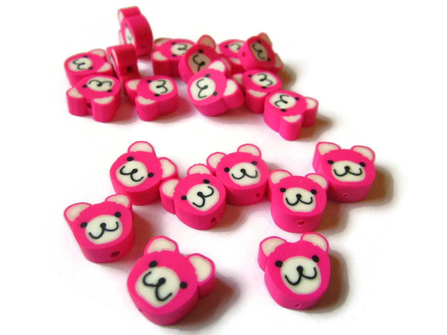 20 Pink Bear Heads Animal Head Beads Polymer Clay Miniature Animal Zoo Beads