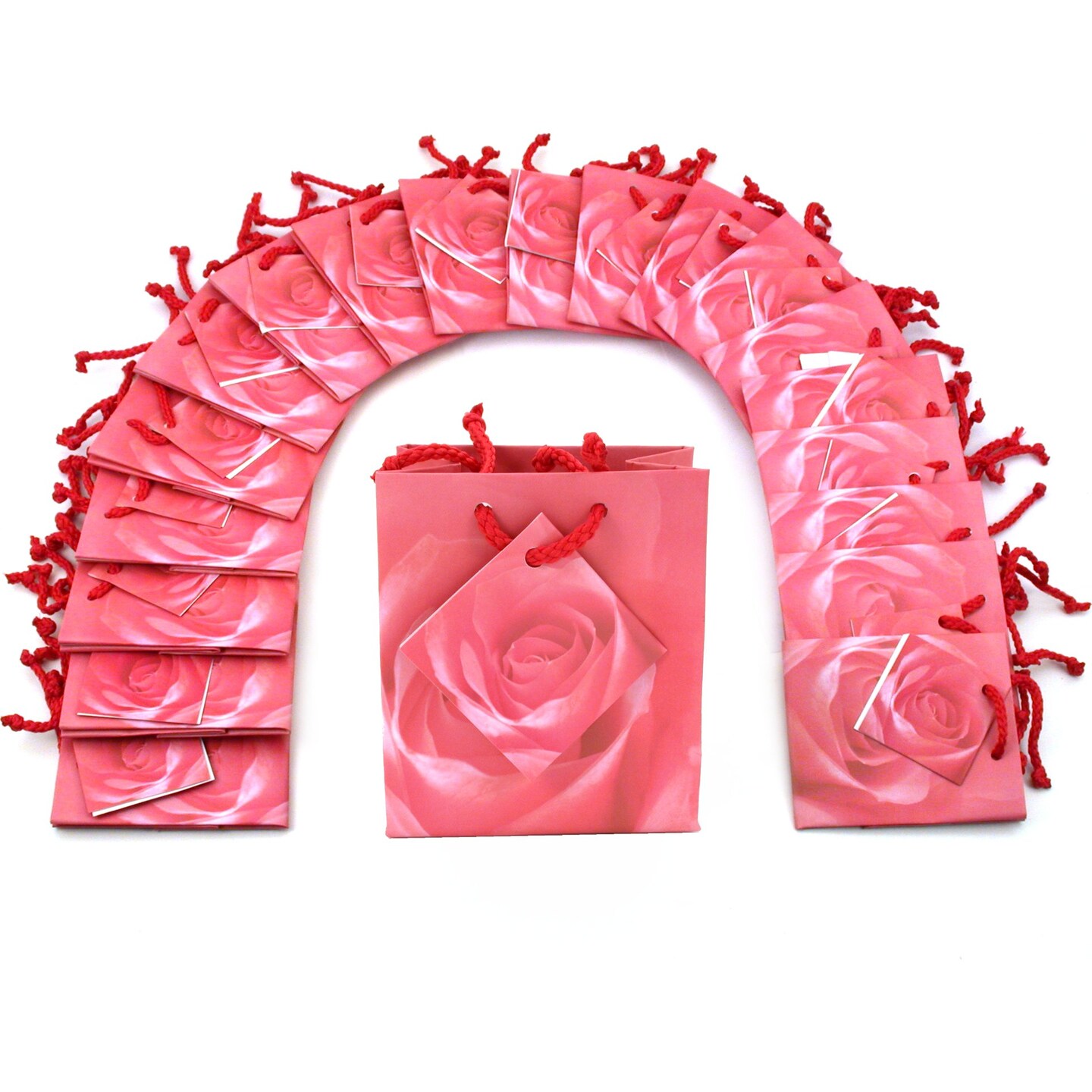 20 Pink Rose Shopping Tote Gift Bags & Card 3 1/2"