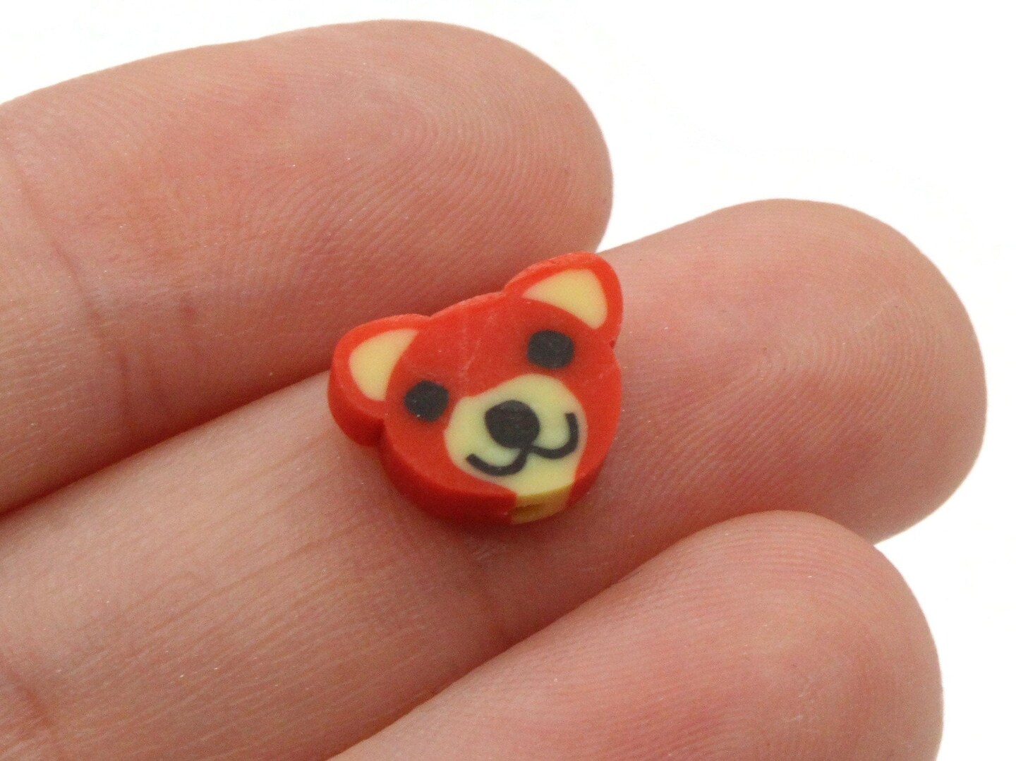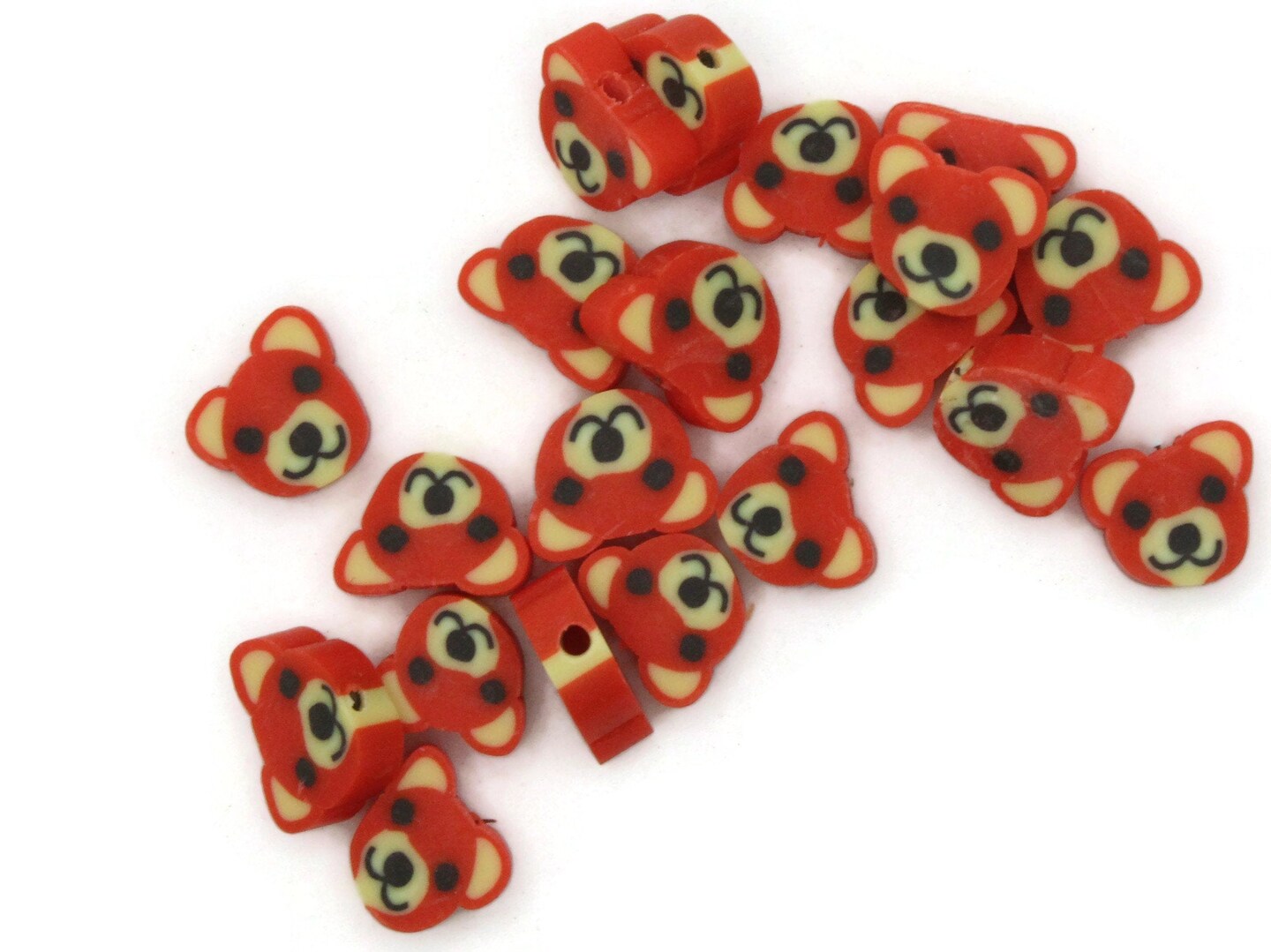 20 Red Bear Head Miniature Animal Polymer Clay Beads