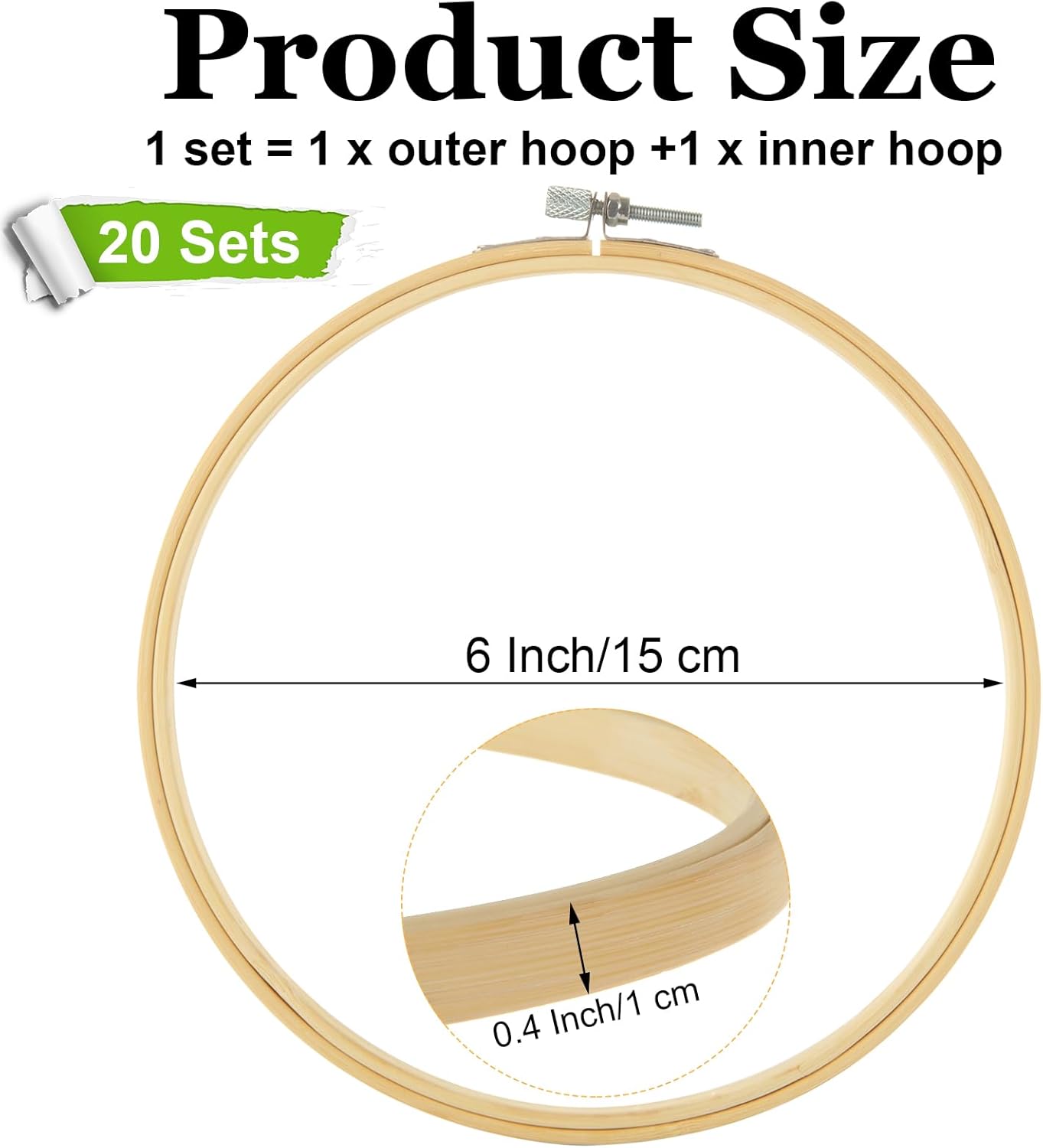 20 Sets 6" Bamboo Embroidery Hoops for Crafts & Sewing