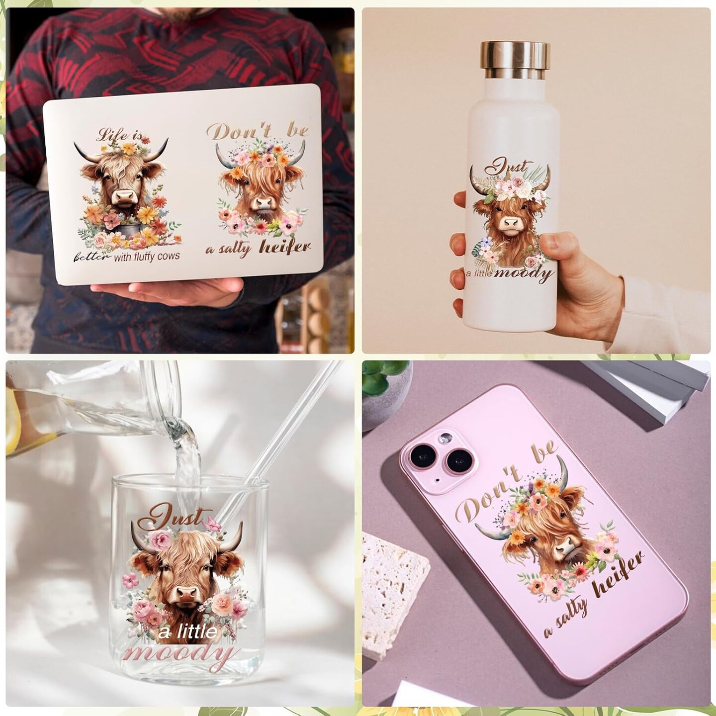 20 Sheets Highland Cow Rub on Transfer (Highland Cow) 3.94 x 3.94 x 0.39 inches